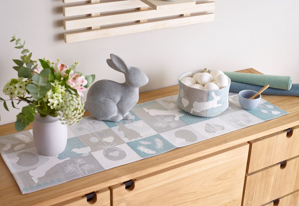 Gobelínový velikonoční běhoun Happy Easter s motivem zajíčků a vajíček. Udělejte si příjemnou velikonoční atmosféru s krásným běhounem z robustního materiálu.