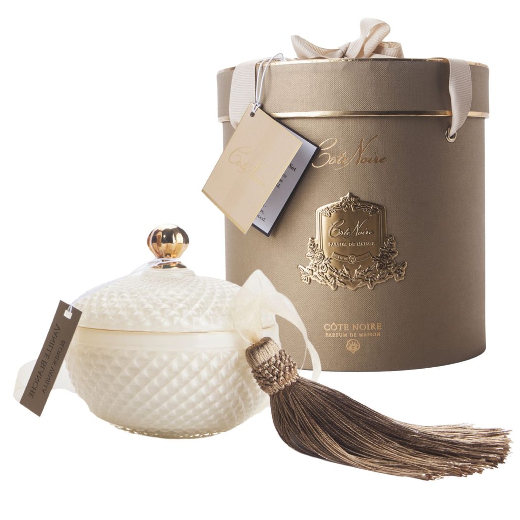 Smyslná vůně jasmínu, kokosu, cedrového dřeva a tahitské vanilky naplní váš domov hřejivou elegancí. Round Art Deco svíčka z přírodního vosku Ecoluxe hoří až 60 hodin v elegantní krémové sklenici se zlatými detaily, střapcem, parfémem a dárkovým balením, je dokonalým exkluzivním dárkem i výrazným interiérovým doplňkem.