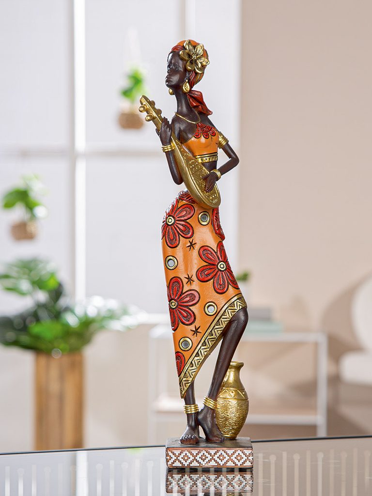 Dekorace figura Afričanka African Beat s kytarou, 6x6,5x32 cm
