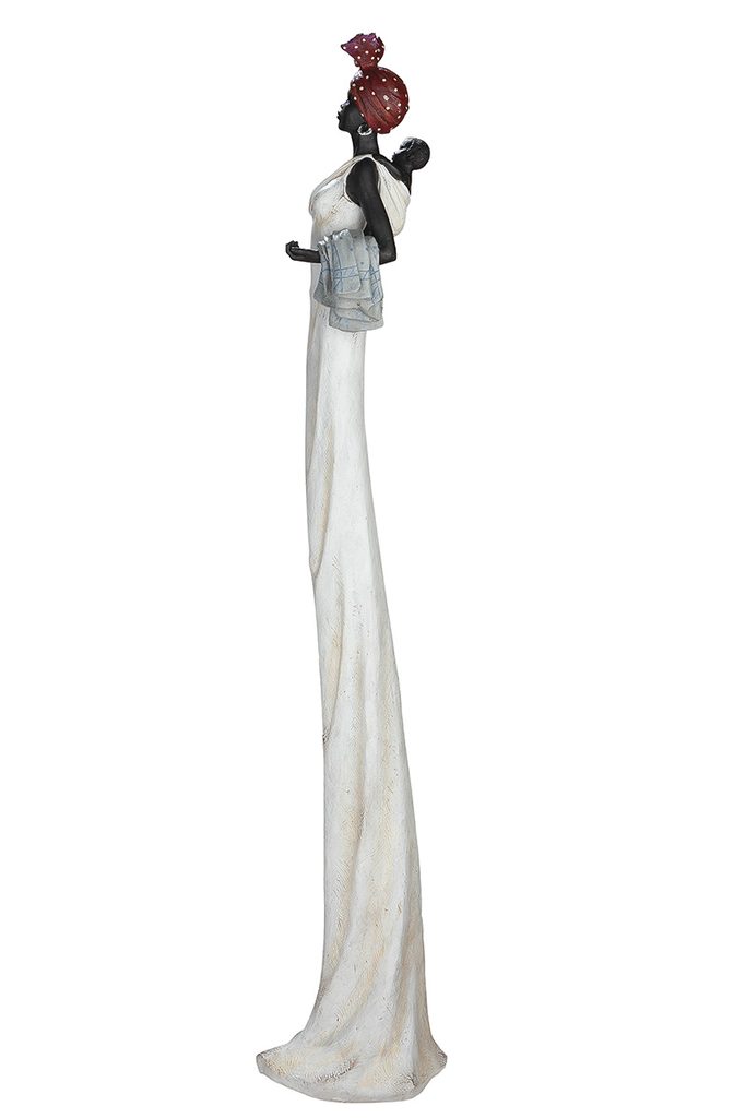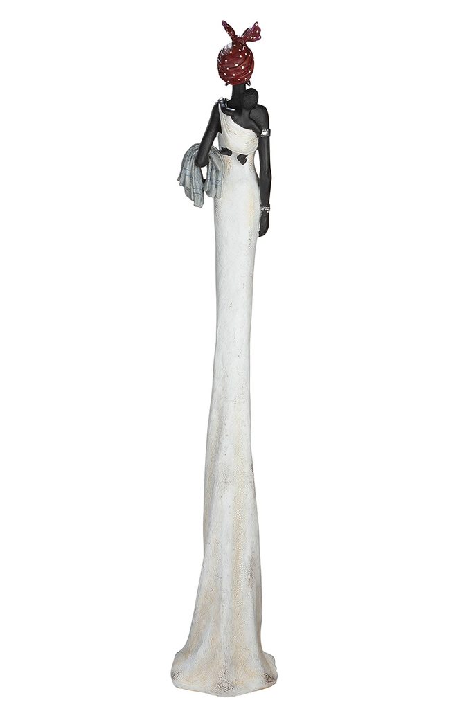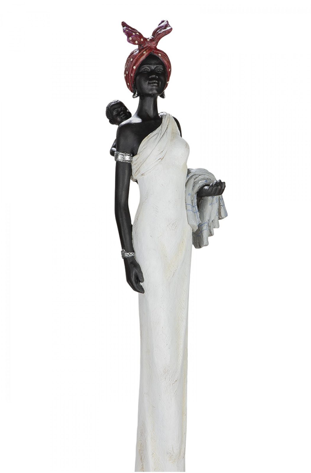 Dokonalá soška Afričanky Tortuga v bílých šatech, červeném šátku a s hnědým košíkem plných červených bobulí. Tortuga se hodí do každého interiéru.