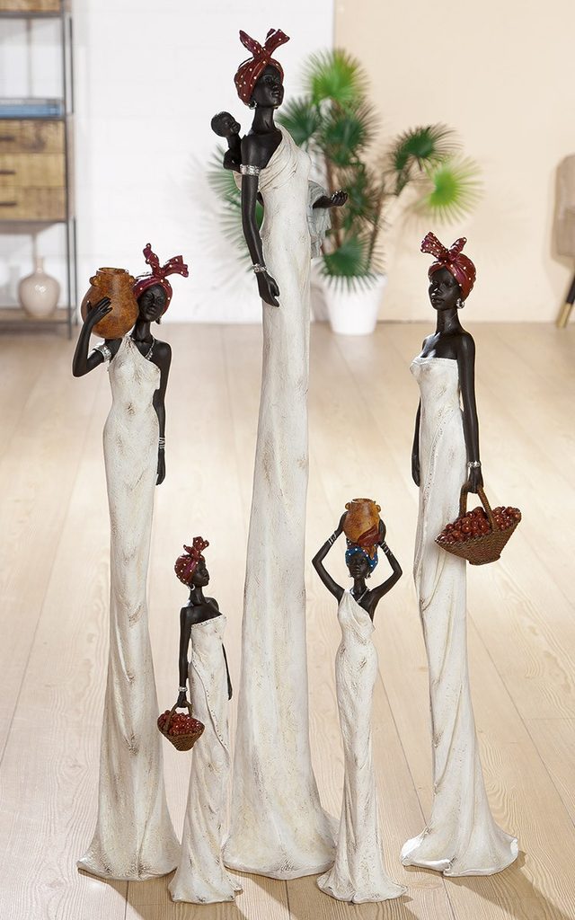 Dokonalá soška Afričanky Tortuga v bílých šatech, červeném šátku a s hnědým košíkem plných červených bobulí. Tortuga se hodí do každého interiéru.