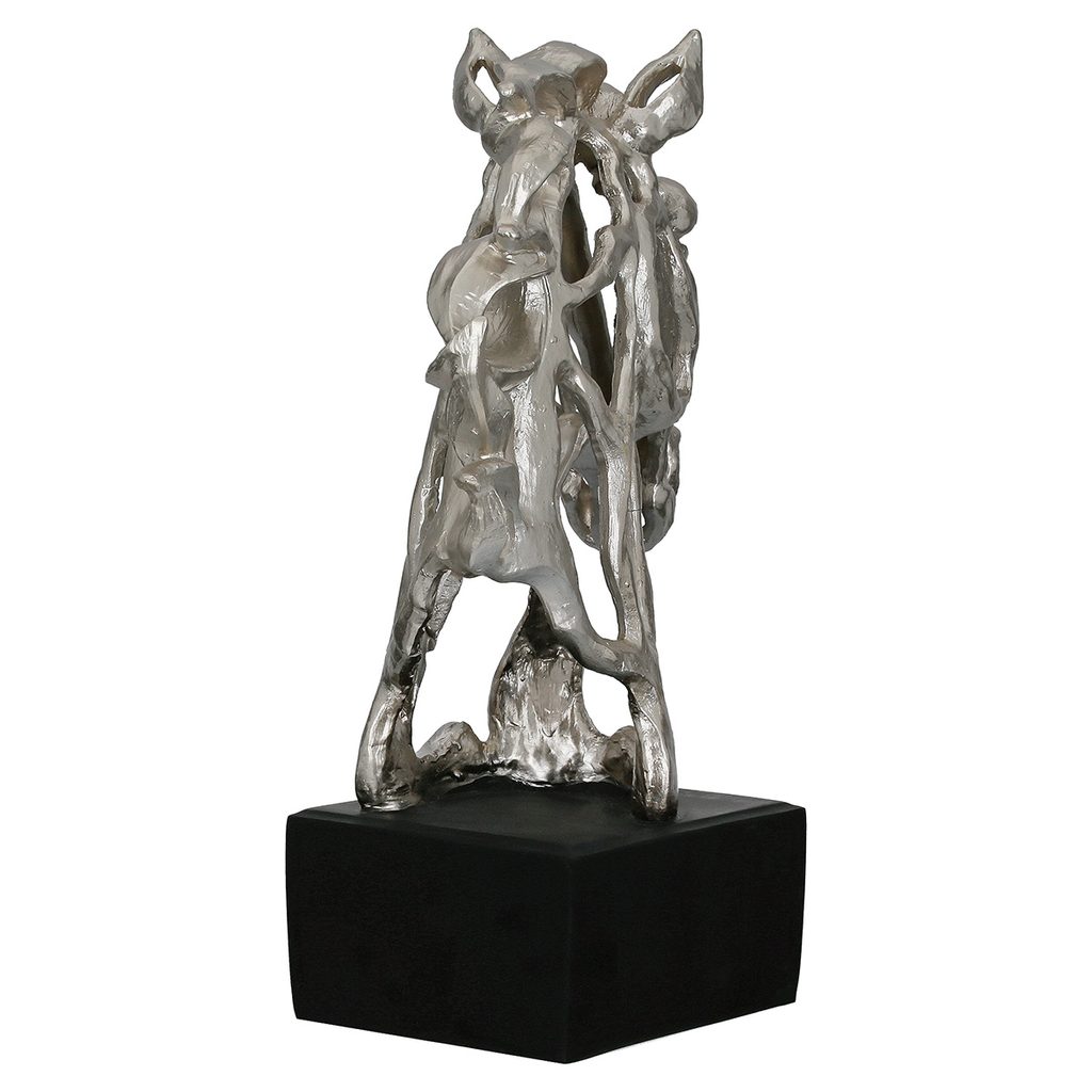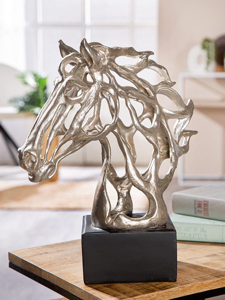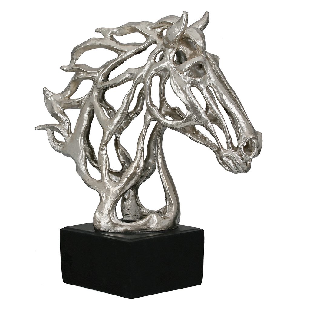 Dekorace figura hlava koně na podstavci kovový vzhled, 15x31x39,5 cm