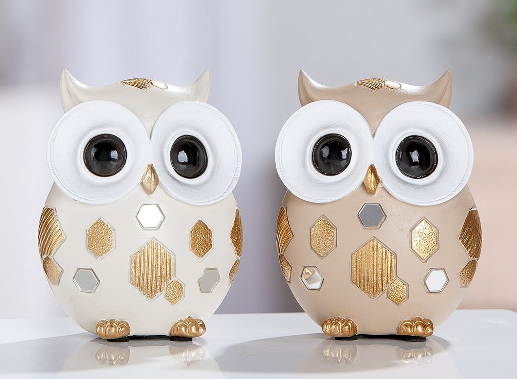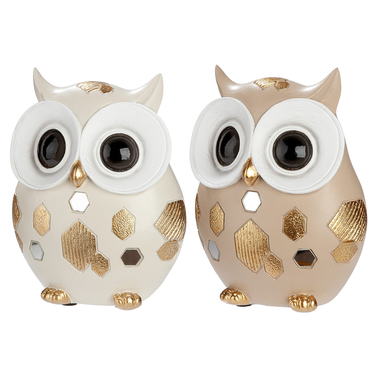 Dekorace figurka sova Midas bílá/hnědá 1ks, 6x9,5x12 cm
