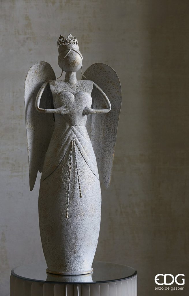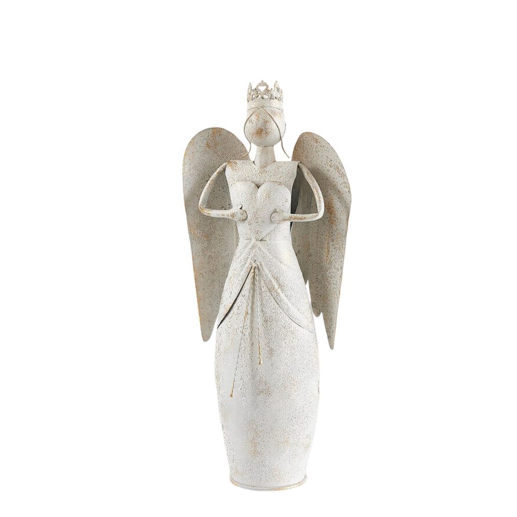 Nadčasová kovová dekorace anděla se srdcem v bílo-zlatém provedení zaujme svým elegantním zpracováním a jemnou symbolikou. Stylový doplněk, který vnese do interiéru klid, lásku a světlo.