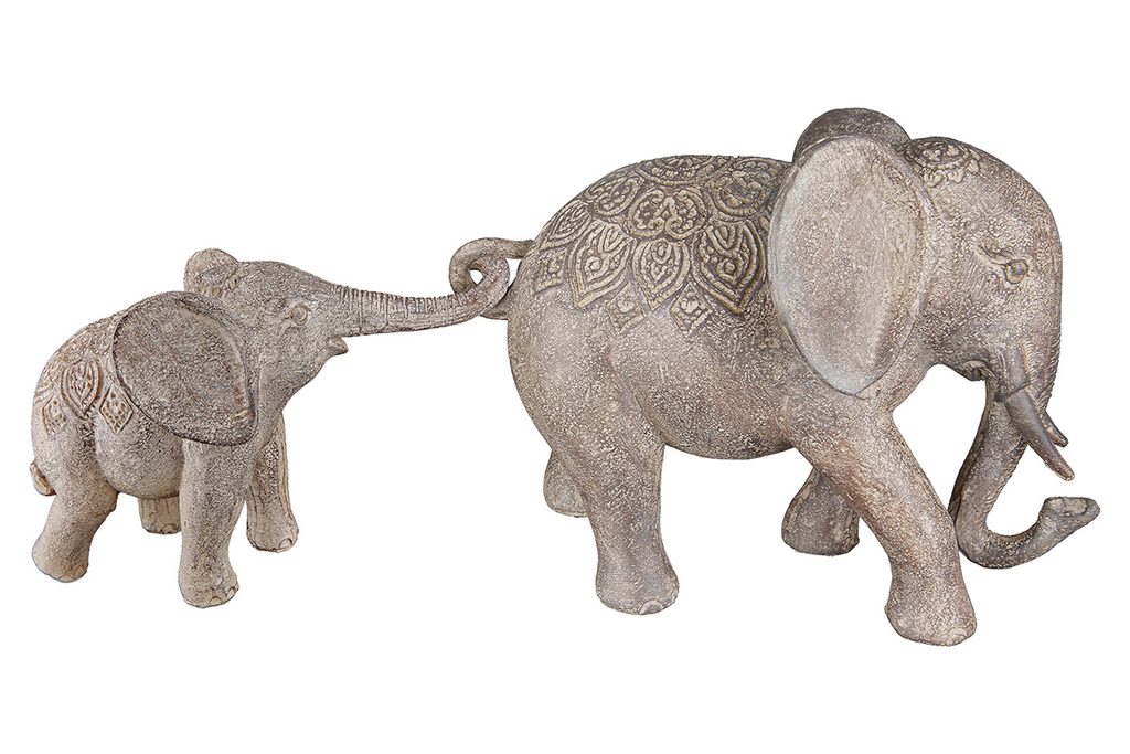 Dekorace slon s mládětem Mweya, 10x36,5x15,5 cm