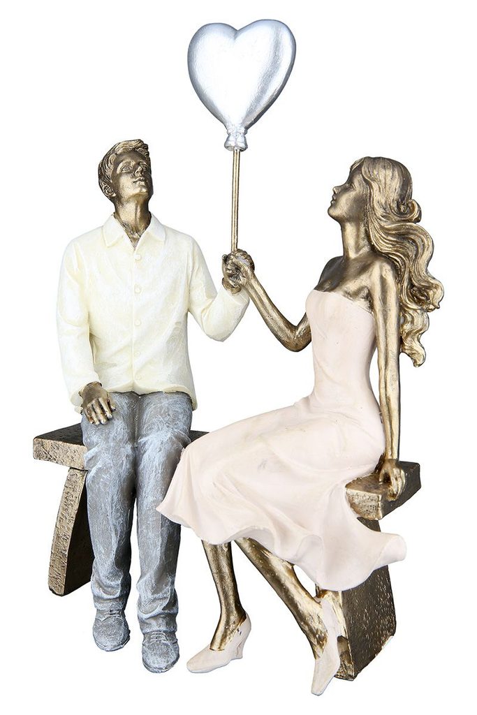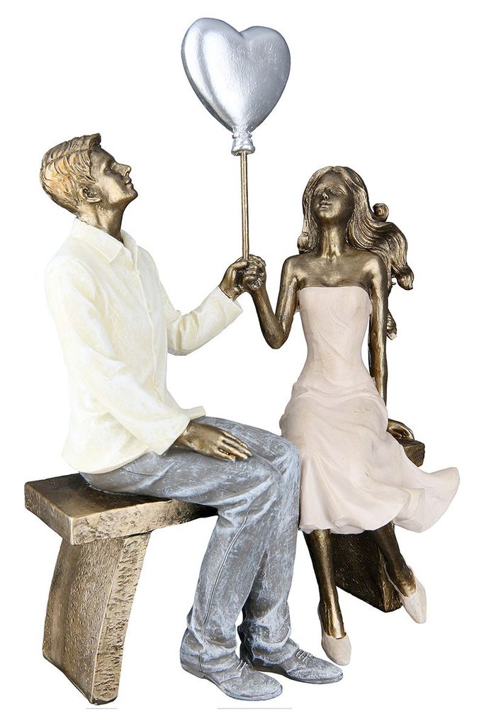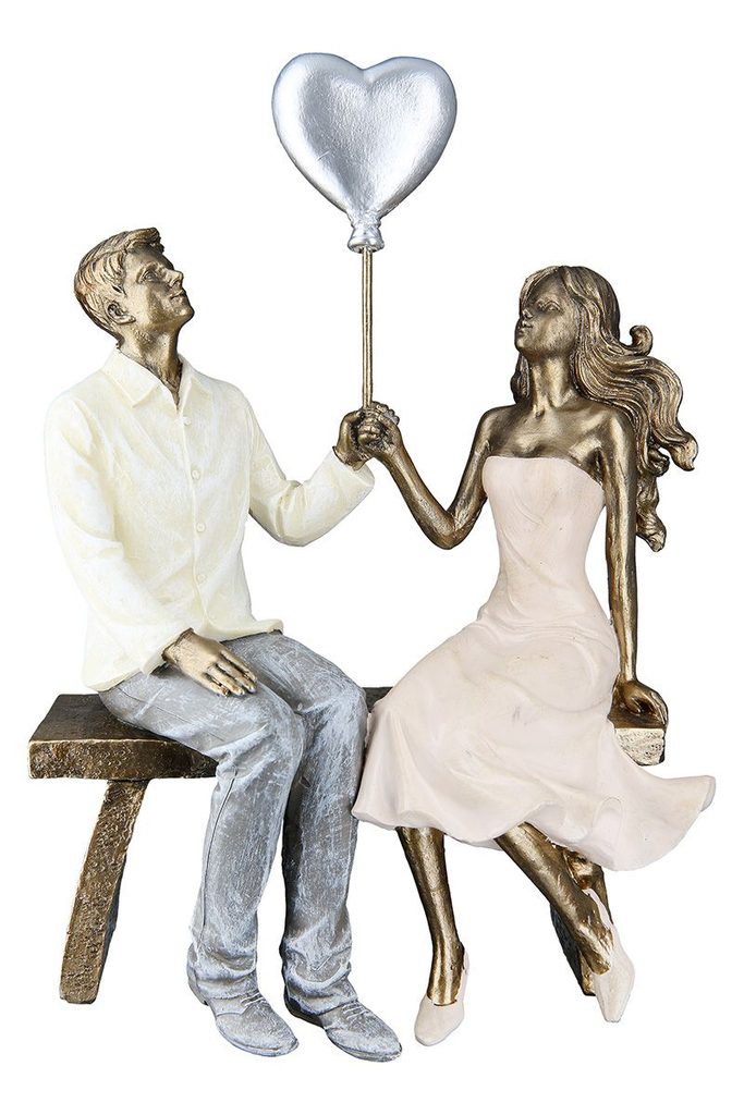 Dekorace zamilovaný pár na lavičce bronzová, 7,5x16,5x24,5 cm