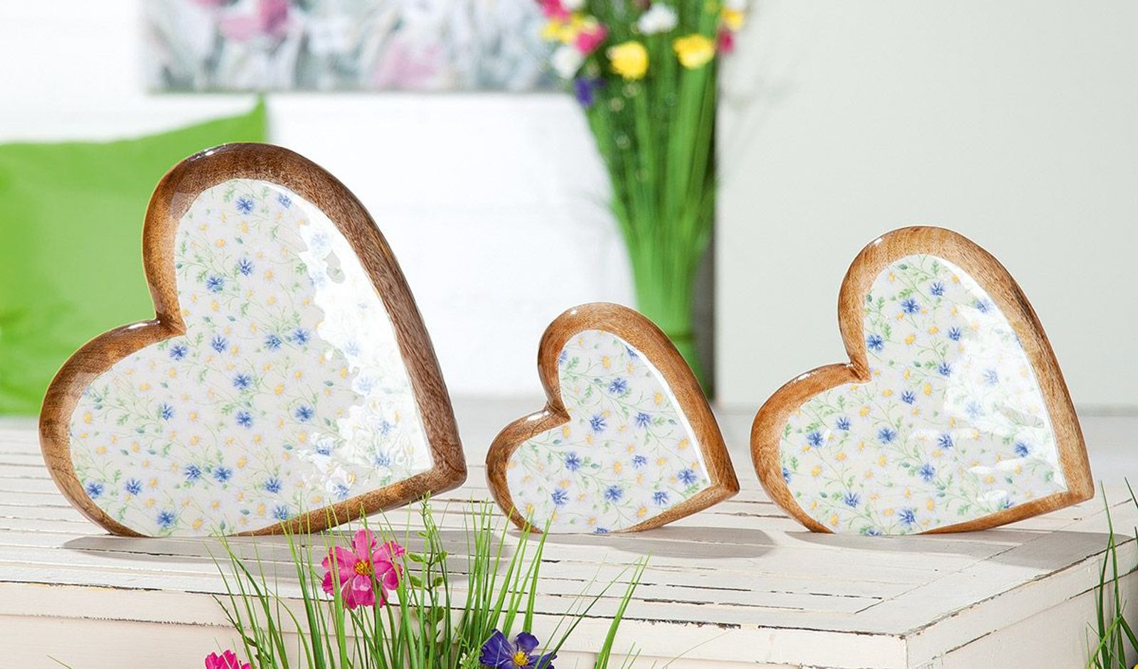 Dřevěná dekorace srdce Wild Flowers 1ks, 15-25 cm