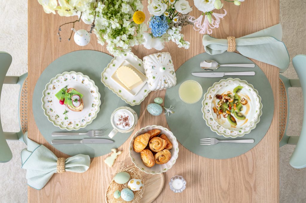 Snídaňová sada pro dva Villeroy & Boch Easter Delight (6 ks) vnese na váš stůl kouzlo jara a velikonoční pohody. Obsahuje 2 dezertní talíře 21,9 cm, 2 misky na cereálie 0,62 l a 2 hrnky 360 ml. Ideální pro společné rodinné snídaně plné radosti a tradice.