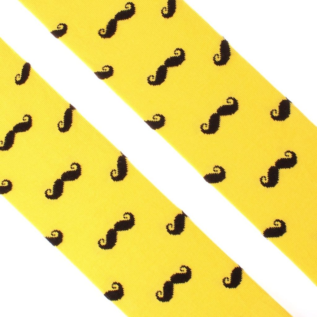 Ostře žluté ponožky s černým knírem, který teď frčí úplně všude, nejenom na obličeji, ale i na nohách