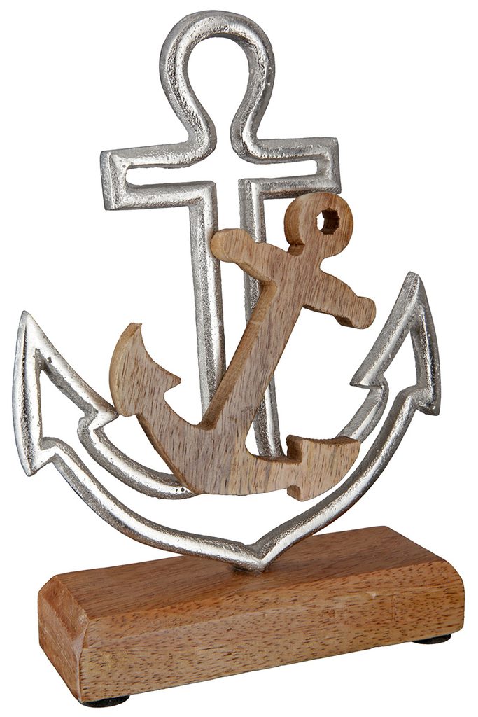 Kovová dekorace kotva na dřevěném klínku, 5x14x20 cm