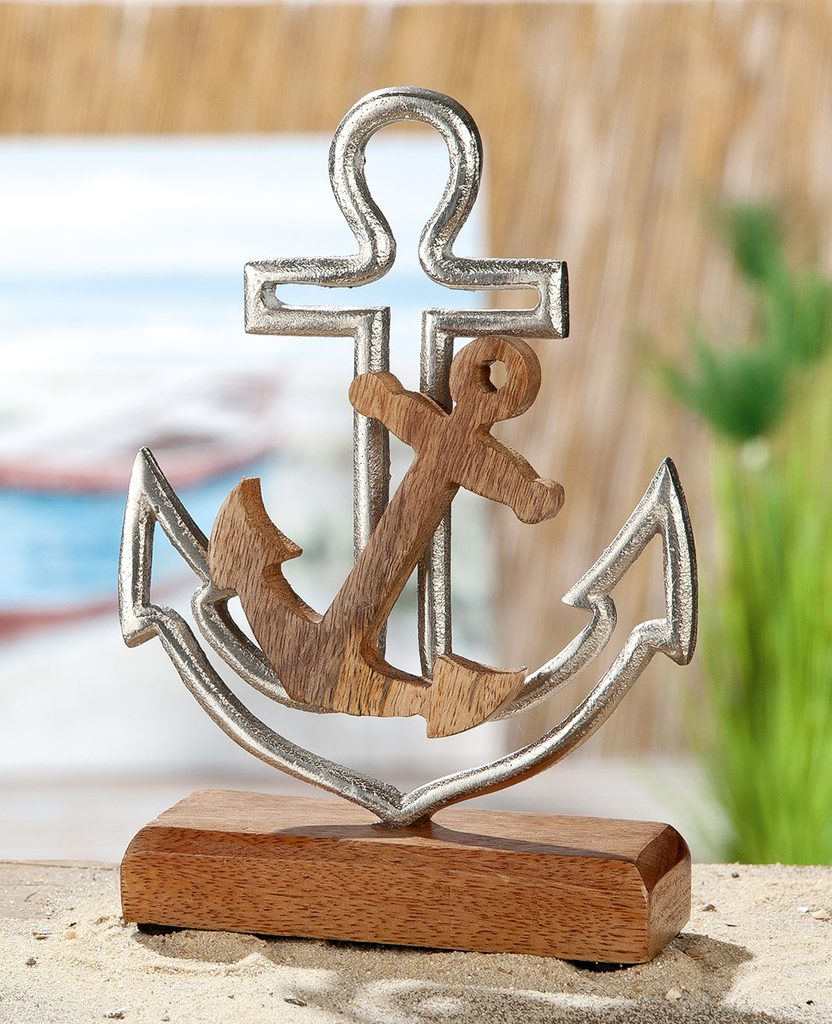Kovová dekorace kotva na dřevěném klínku, 8x37,5x46 cm