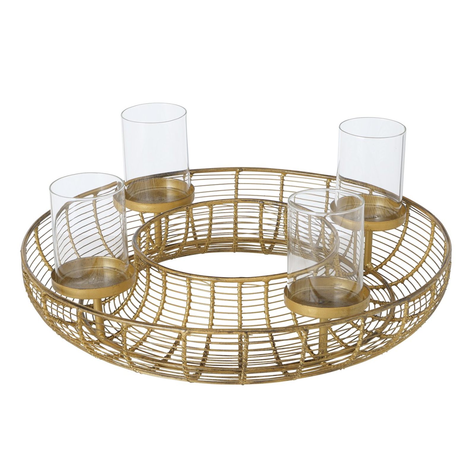 Vánoční kovový svícen s hvězdami zlatý, 15,5x12,5 cm