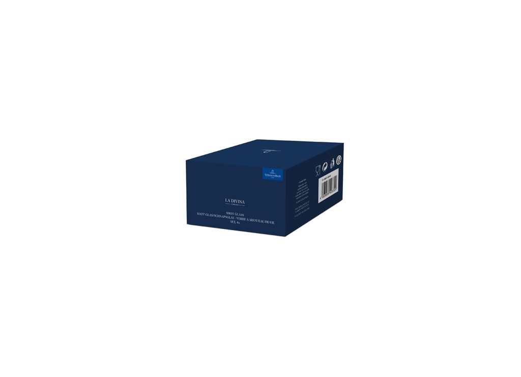 Elegantní sklenice na panáky z kolekce La Divina od Villeroy & Boch zaujmou čistým minimalistickým designem a kvalitním křišťálovým sklem. Ideální pro servírování destilátů při slavnostních i každodenních příležitostech.