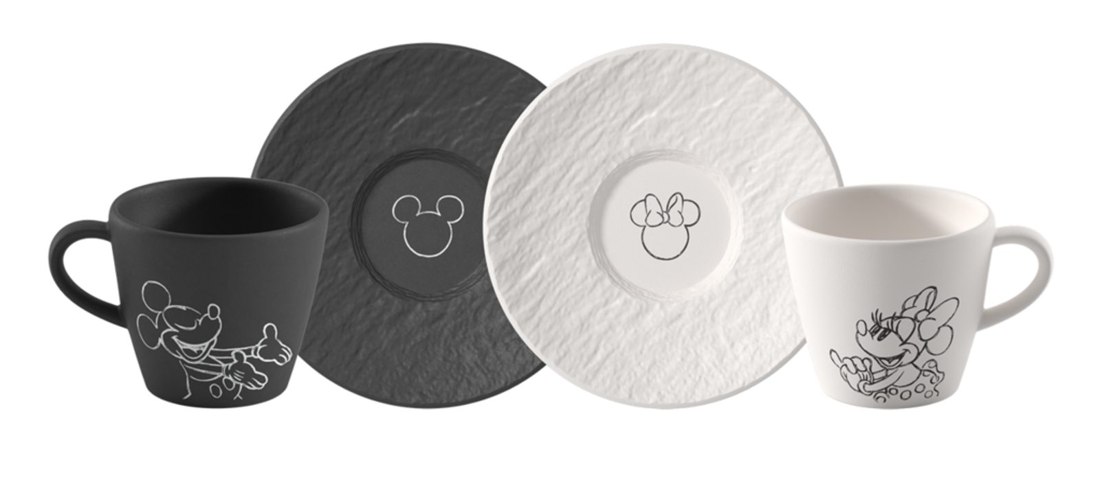 Sada espresso šálků s podšálky Manufacture Rock Mickey Mouse od Villeroy & Boch kombinuje černý a bílý design s ikonickými Disney motivy. Ideální pro stylové podávání espressa.