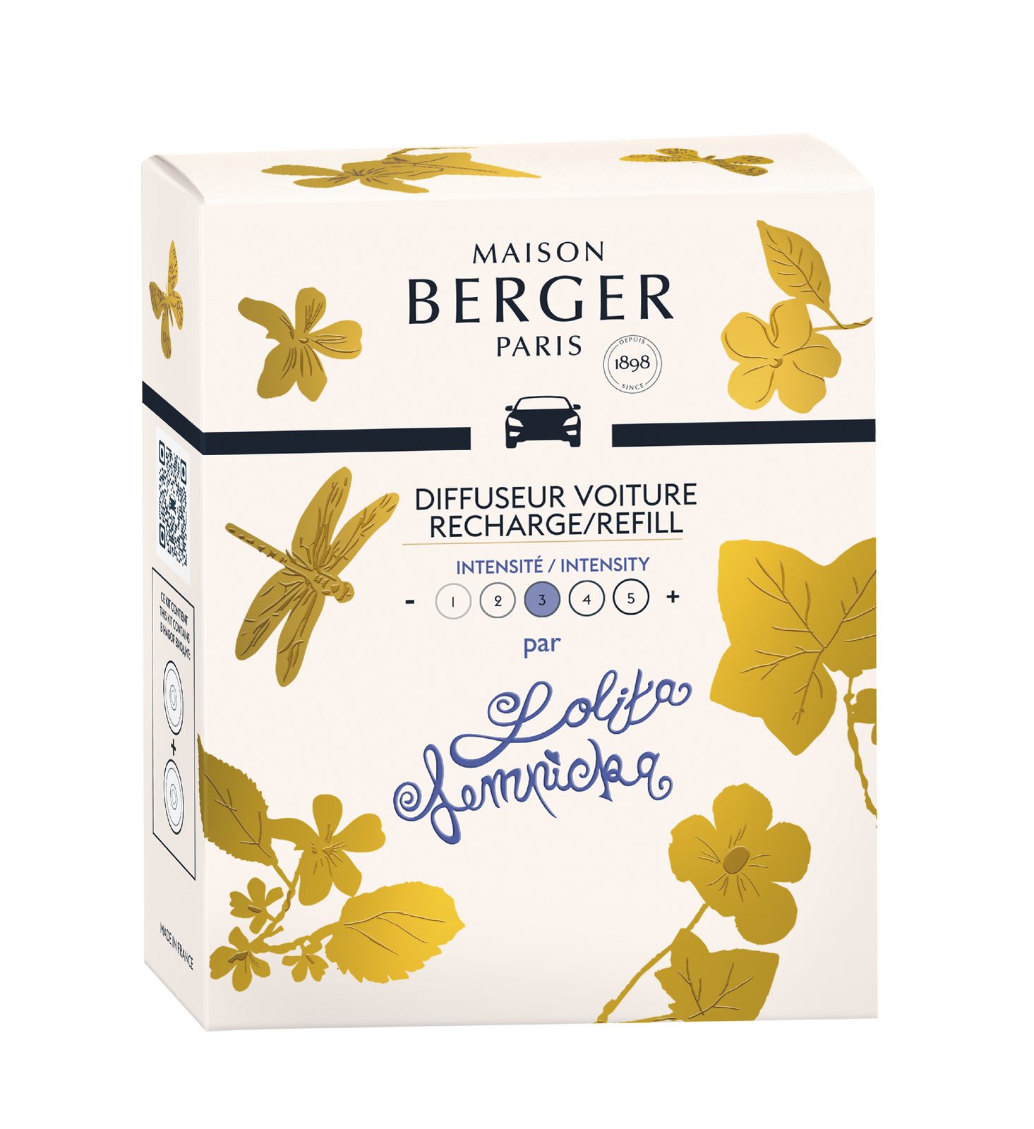 Užijte si květinovou vůni každou jízdu s náplněmi Maison Berger Paris x Lolita Lempicka. Jemná květinová harmonie fialkových lístků, třešní a irisu s akordy tonka bobů, karamelu a jemného dřeva – elegantní a smyslná vůně, která promění váš interiér vozu až na 4 týdny.