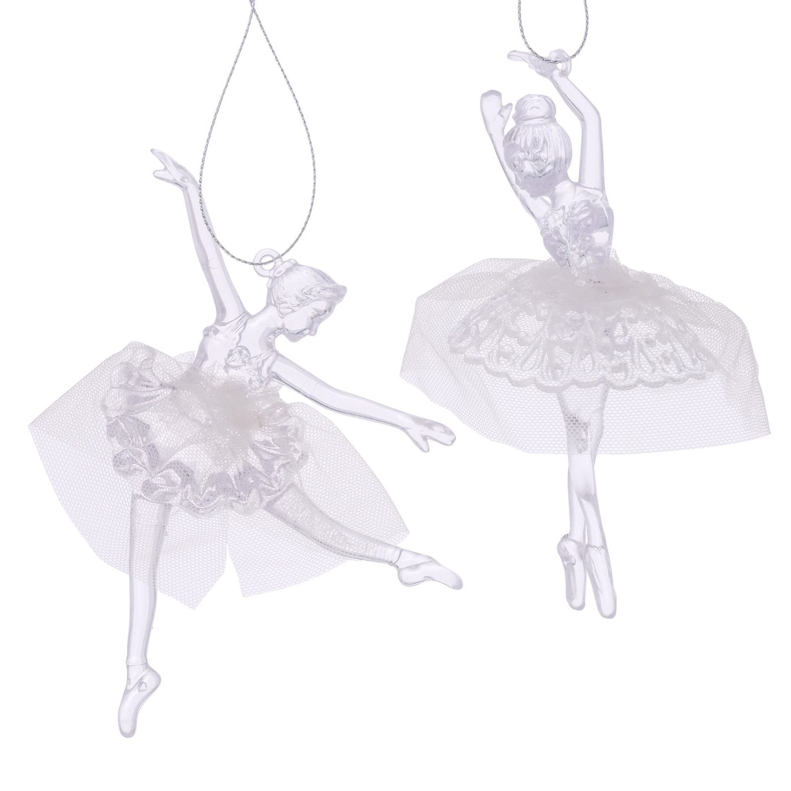 Ozdoba baletka na zavěšení v tylové sukni v průhledném provedení.