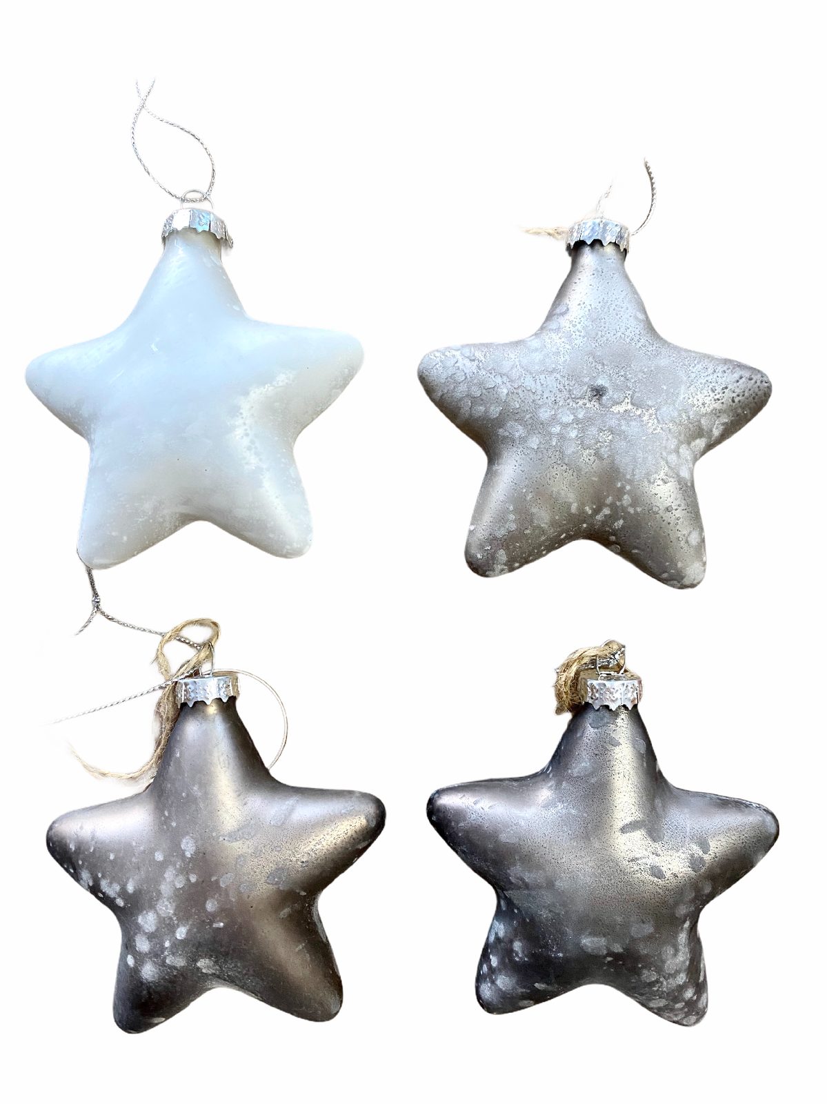 Malá krásná skleněná ozdoba ve tvaru hvězdičky se jemným bílým dekorem. Vyzdobte si svůj vánoční stromeček těmito ozdobami nebo s němi vyzdobte adventní věnec.