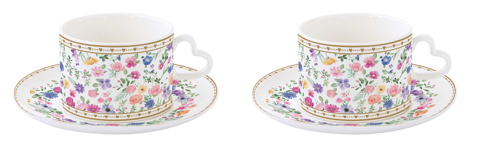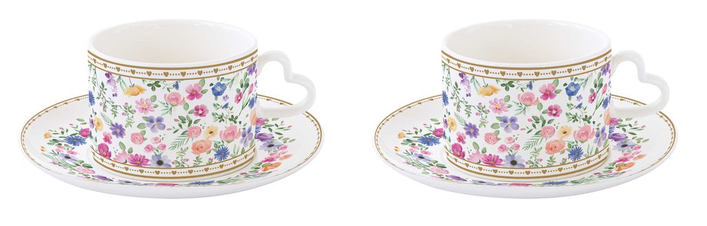 Sada dvou porcelánových šálků o objemu 240 ml s podšálky z kolekce Mon Amour od italské značky Easy Life. Romantický květinový design se zlatými detaily a elegantním ouškem ve tvaru srdce přináší do vašeho stolování kouzlo lásky. Baleno v luxusní dárkové krabičce, ideální jako dárek.