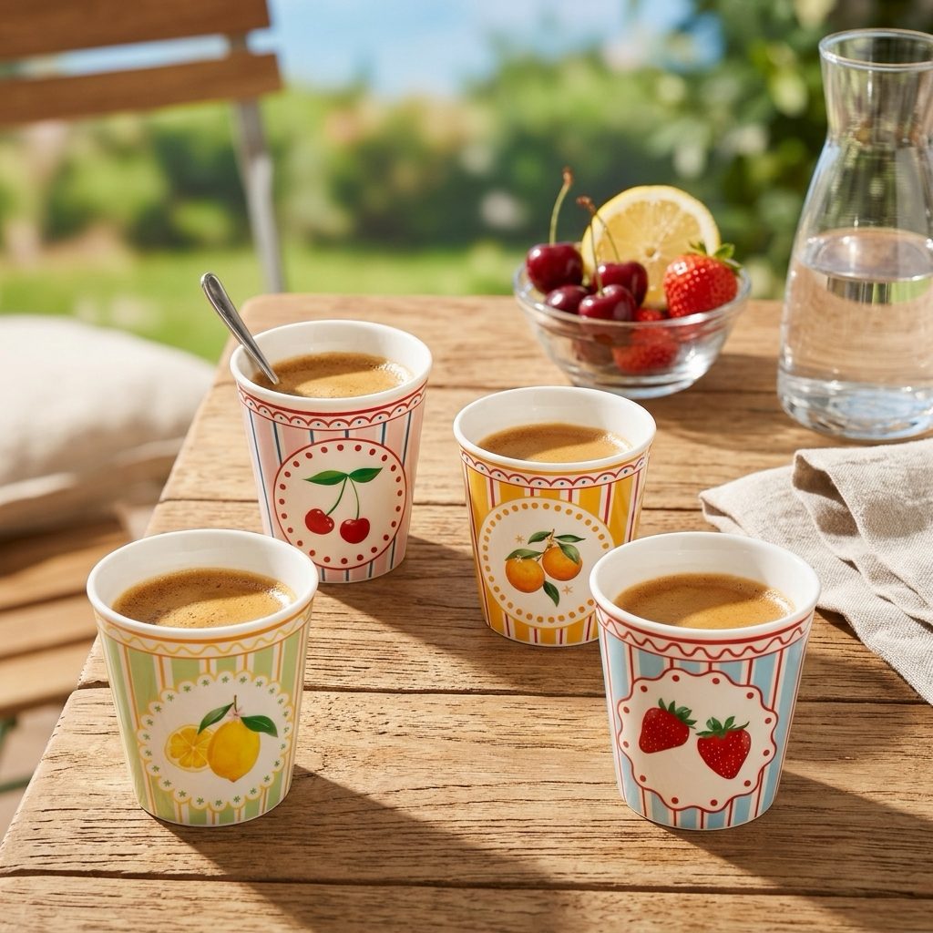 Porcelánové espresso šálky od značky Easy Life v hravém ovocném designu dodají vašemu stolování svěžest a styl. Ideální pro milovníky kávy, skvělé také jako dárek v elegantní krabičce.