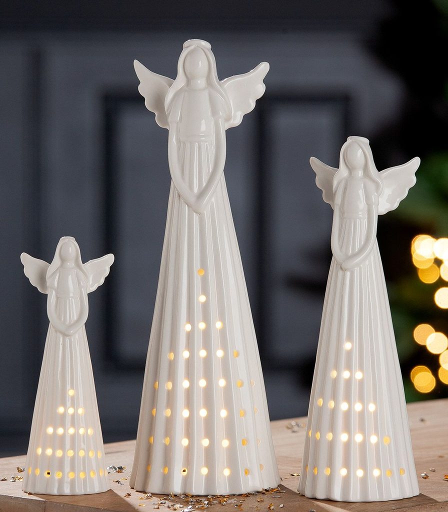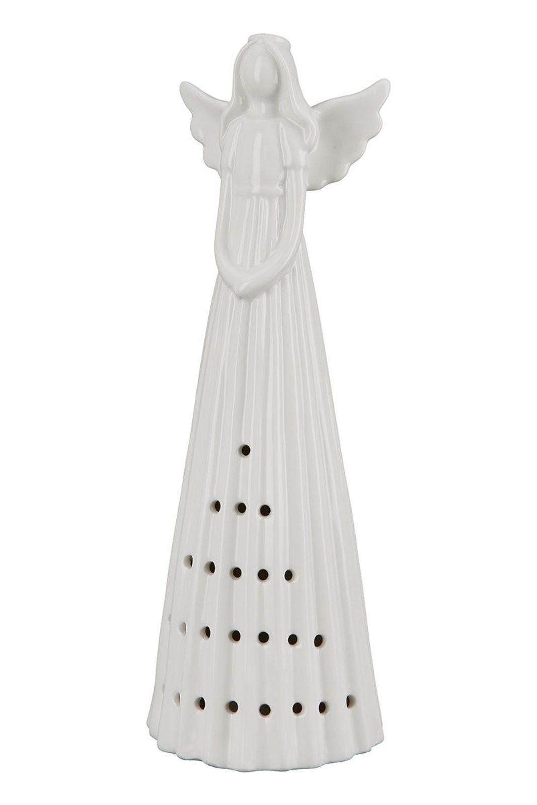 Porcelánový anděl s LED osvětlením bílý, 8,5x8,5x26 cm