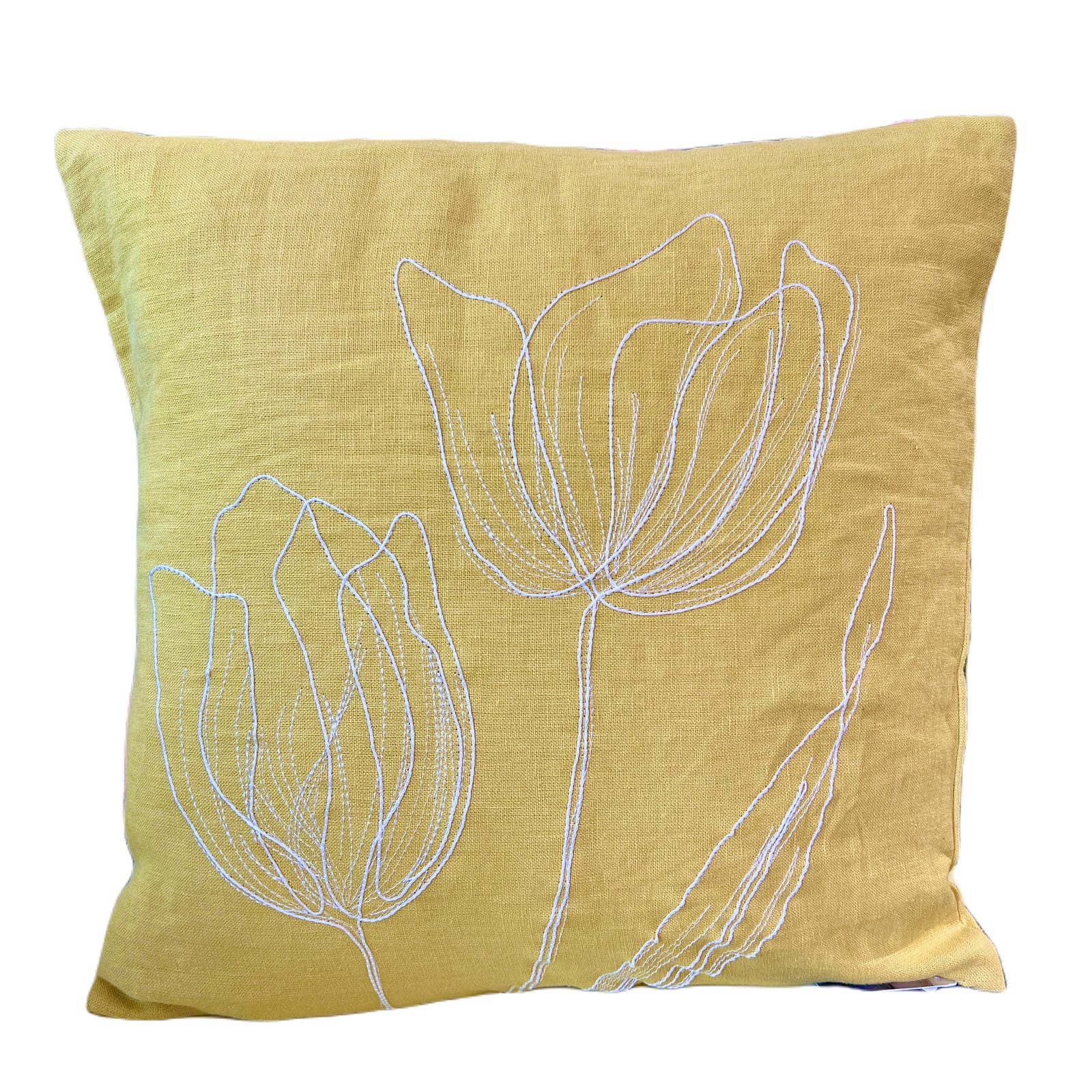 Potah na polštář Darwin žlutý s výšivkou 40x40cm, Sander