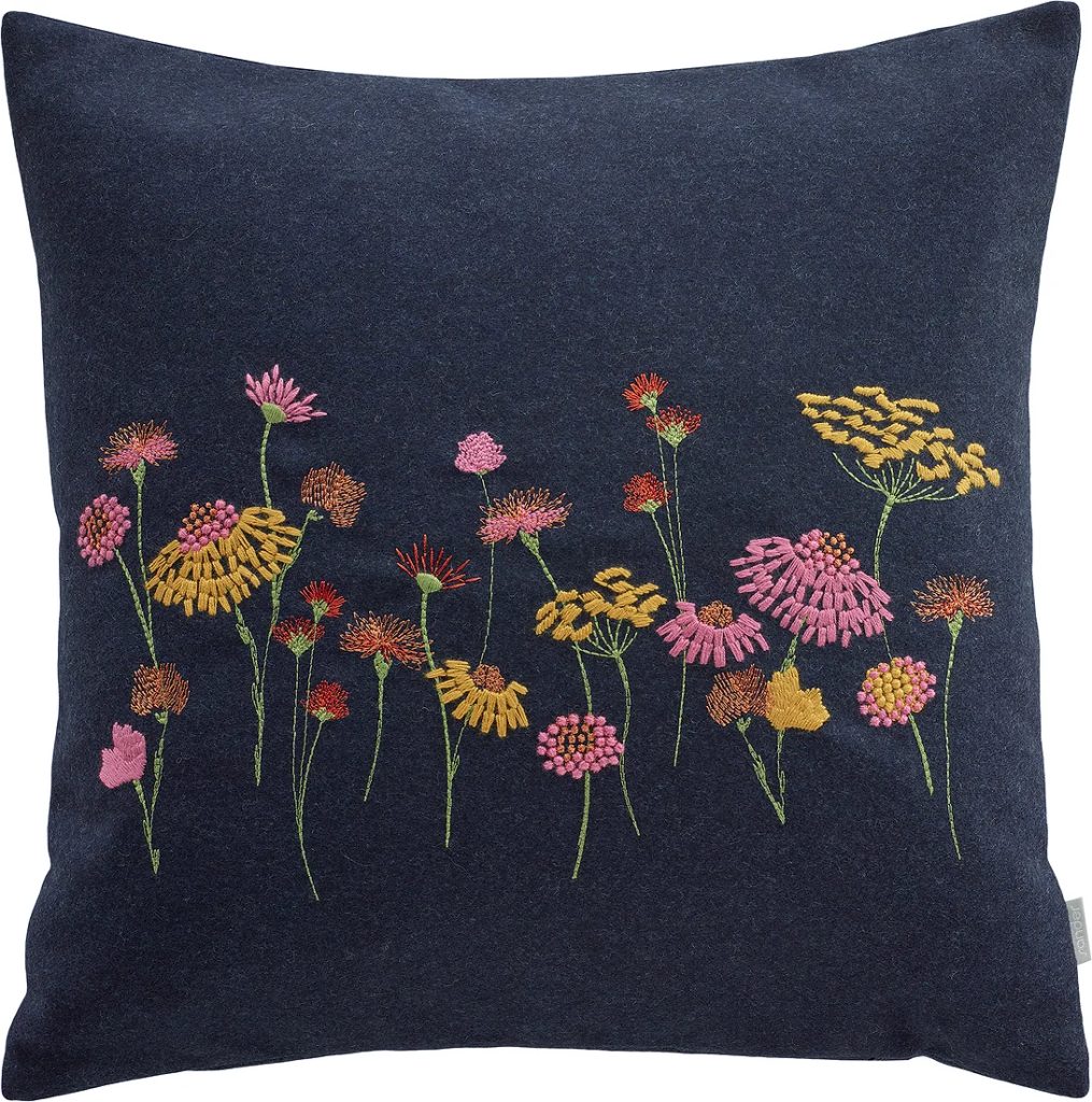 Potah na polštář Gerry Wool od prestižní značky Sander přináší do vašeho domova jedinečnou kombinaci elegance a kvality. Vlněná látka v tmavě modrém odstínu poskytuje příjemnou texturu a je doplněna unikátní 3D výšivkou jemných květů, které vytvářejí moderní a hravý efekt.
