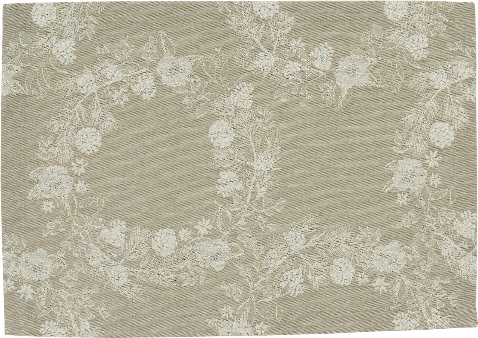 Vánoční béžové prostírání na stůl s motivem borovicových věnečků z kolekce Pine Garland. Přírodní prostírání s vánočním motivem se bude při stolovaní naprosto vyjímat a dodá tečku vaší sváteční tabuli.
