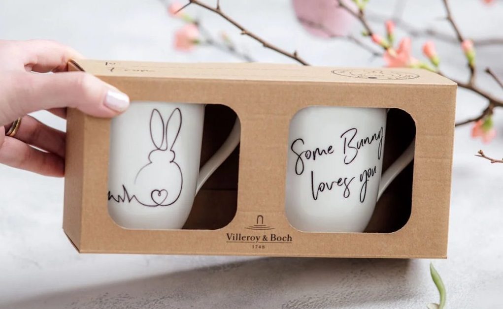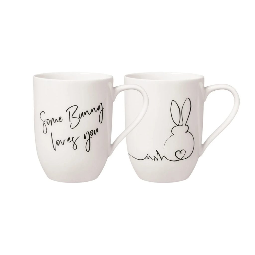 Sada dvou porcelánových hrnků Villeroy & Boch z kolekce Statement s roztomilým motivem zajíčka a nápisem "Some Bunny Loves You". Perfektní pro romantické chvíle u čaje či kávy.