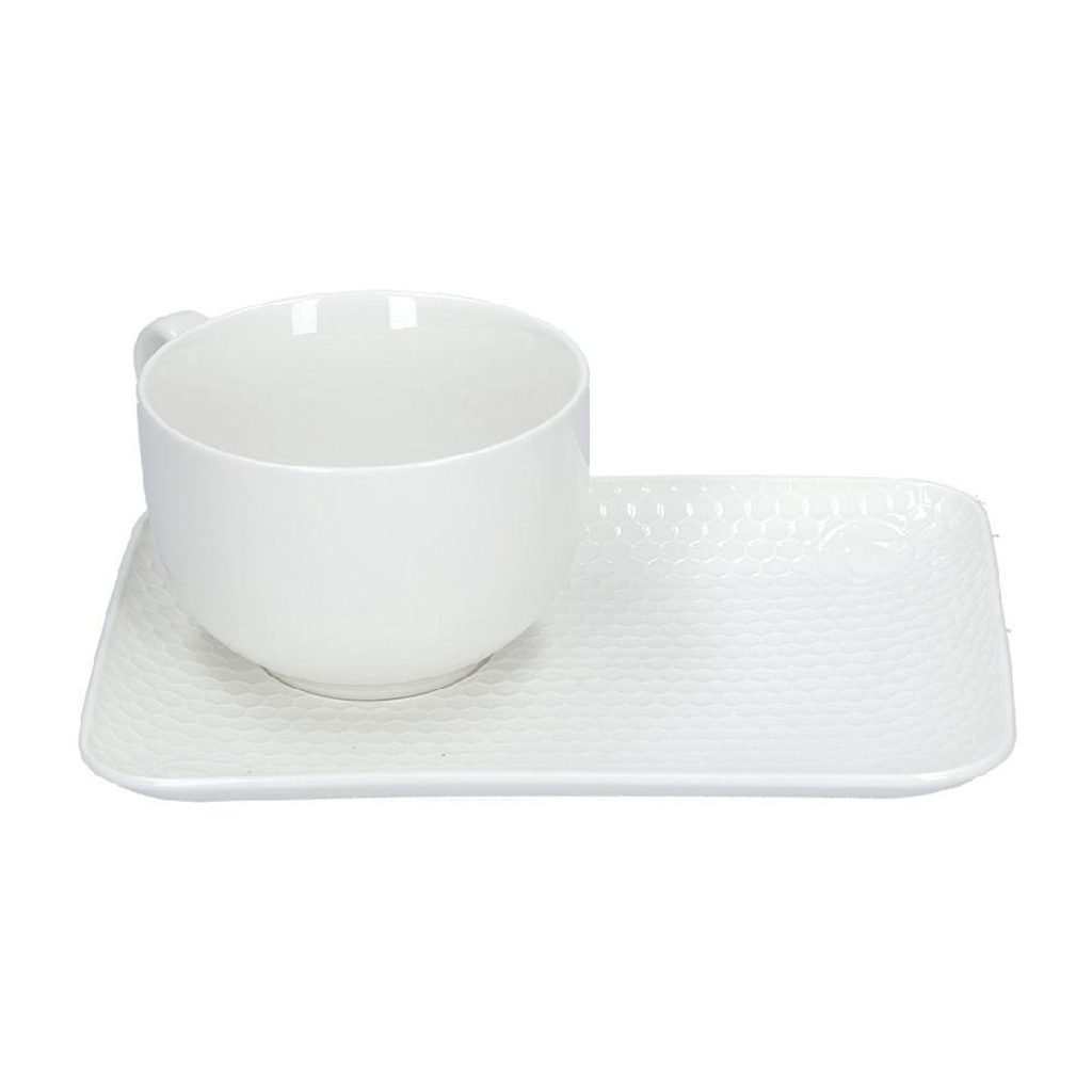 Snídaňová sada z kolekce Aperegina od La Porcellana Bianca zahrnuje šálek a podnos. Elegantní bílý porcelán s jemnou texturou včelího plástu dodá vaší snídani styl a sofistikovanost. Vhodné do myčky i mikrovlnné trouby.