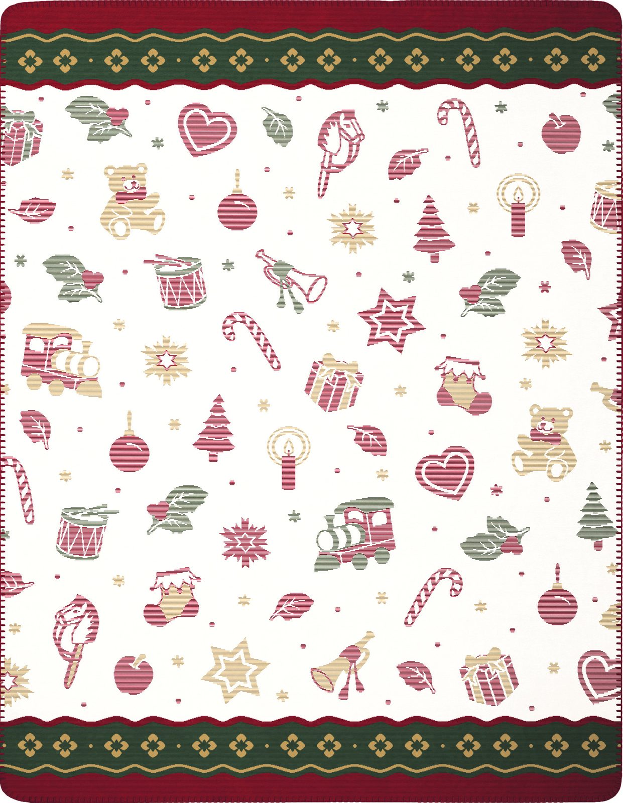 Vánoční deka z kolekce Toy's Deligt o rozměru 150 x 200 cm a dekorem hraček. Deka s klasickými vánočními motivy byla vyrobena firmou Biederlack pro Villeroch & Boch. Krásná a zároveň útulná deka, která vám zpříjemní prožití vánočních svátků.
