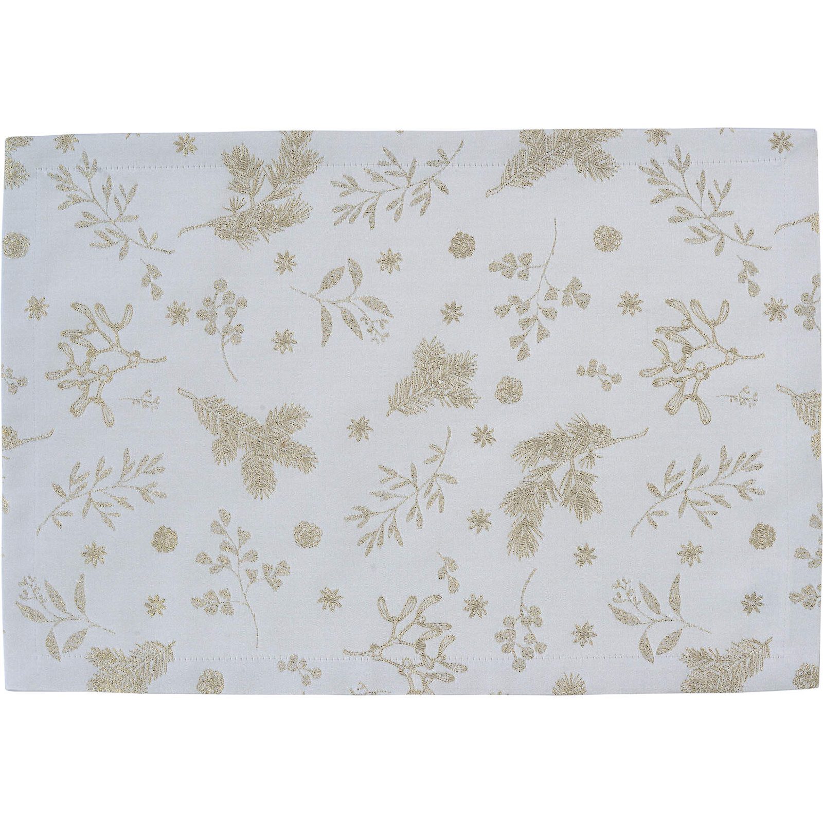 Vánoční bílý ubrus na stůl se zlatými větvičkami jehličí a jmelí z kolekce Wonderland. Ubrus s vánočním motivem se bude při stolovaní naprosto vyjímat a dodá tečku vaší sváteční večeři. Ubrus nejenom skvěle vypadá, ale také je vyroben se speciální ochranou proti skvrnám.