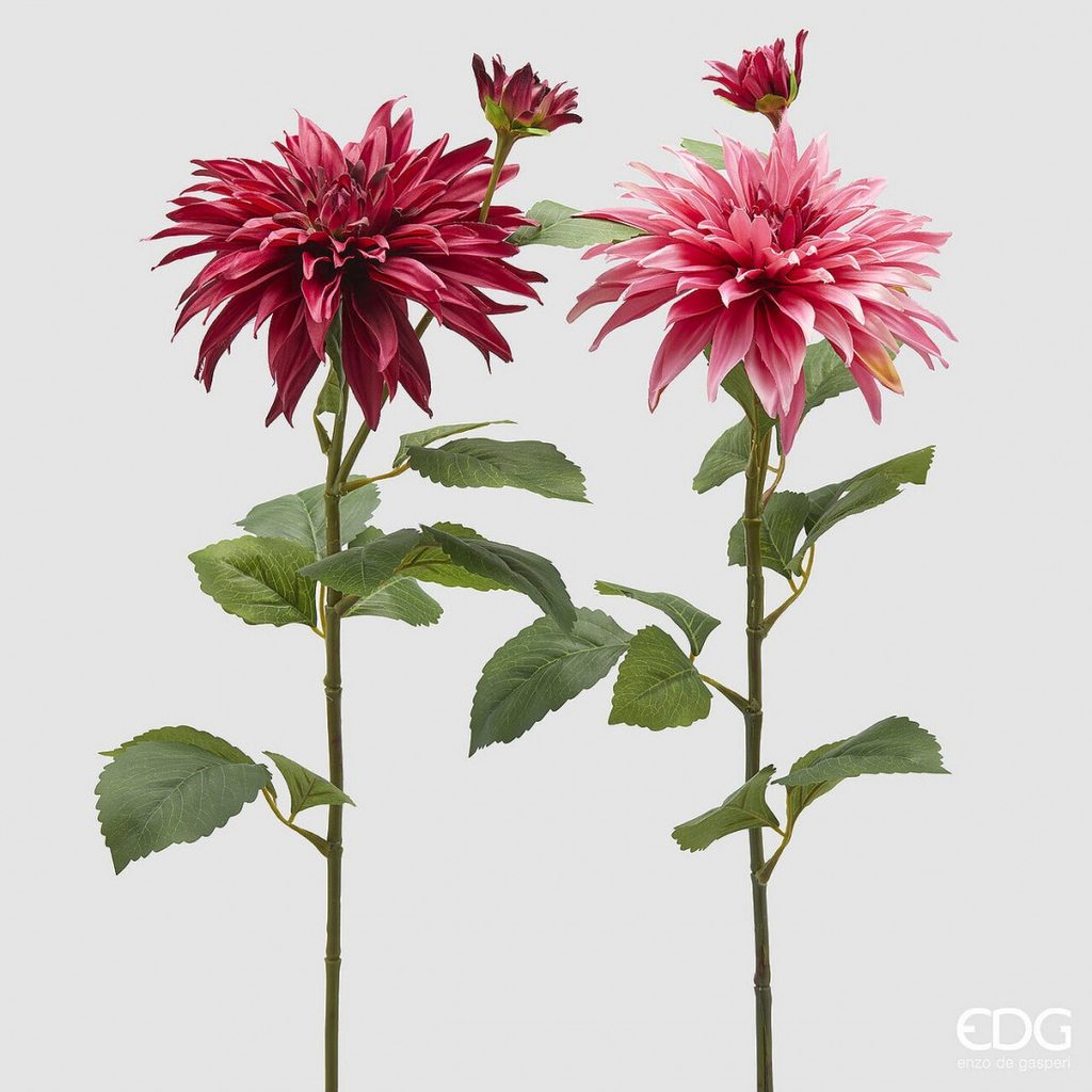 Elegantní umělá jiřina od italské značky EDG s délkou 70 cm je dokonalou dekorací do interiéru. Květy ve světle nebo tmavě růžové barvě a realistické zelené listy vytvářejí luxusní vzhled, který vynikne ve váze, dekoracích či aranžmá. Díky kvalitnímu provedení vypadá jako živá a nevyžaduje žádnou péči.