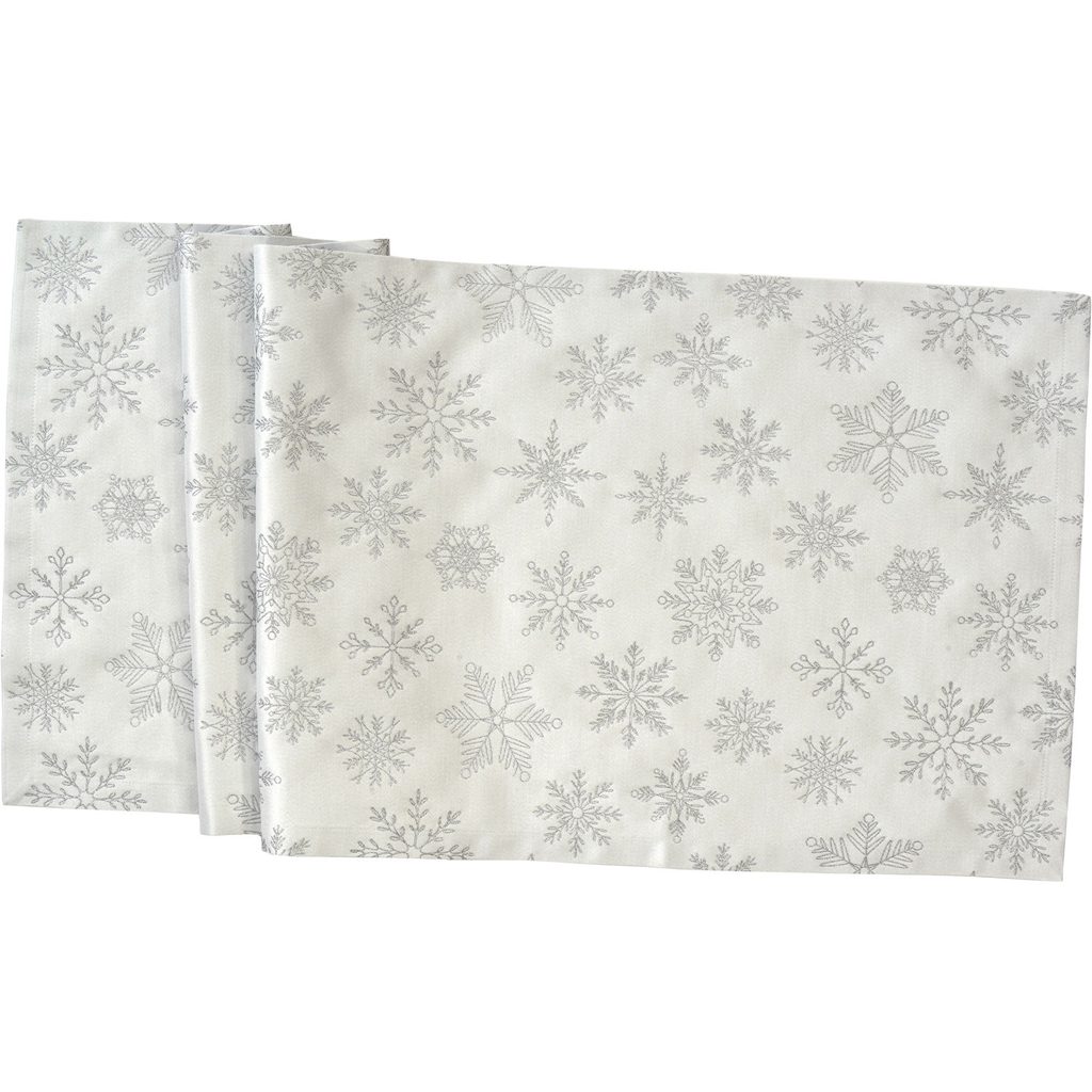 Exkluzivní vánoční běhoun na stůl Cristallo Luce bílo-stříbrný 50x140 cm od značky Sander table&home. Vyrobeno v Německu z kvalitního žakárového materiálu, zdobené stříbrnou výšivkou sněhových vloček s jemným lesklým efektem. Elegantní doplněk pro vaše slavnostní stolování.