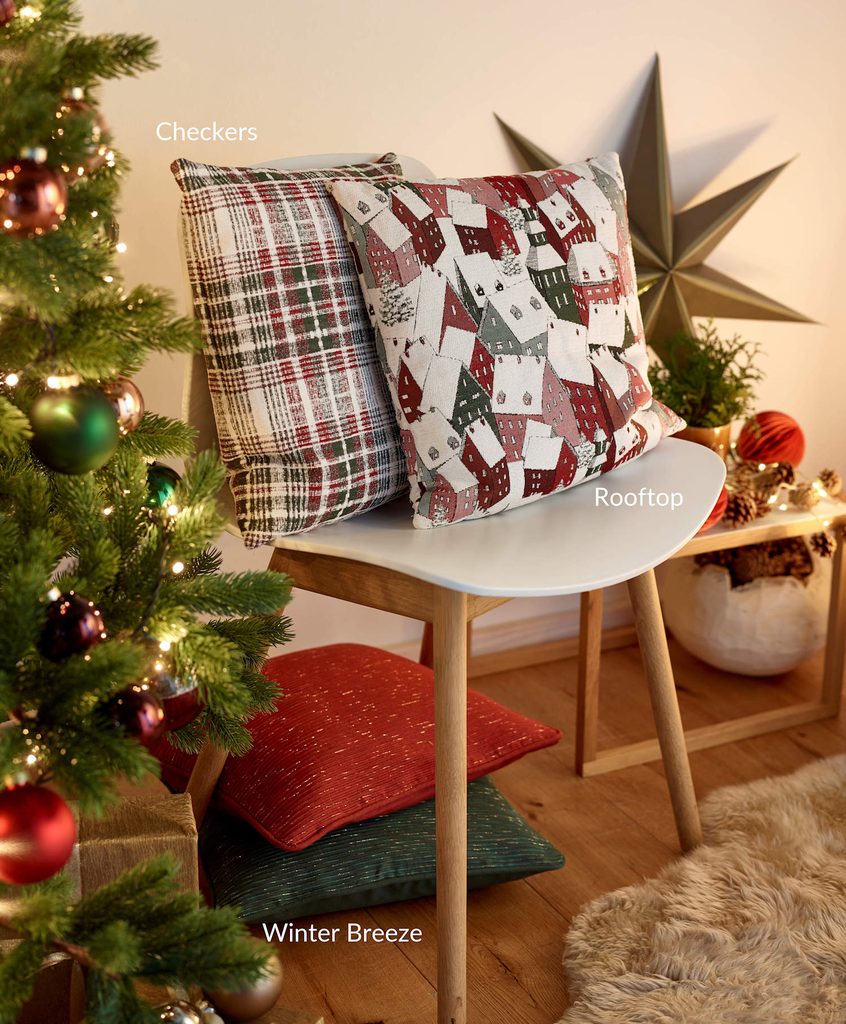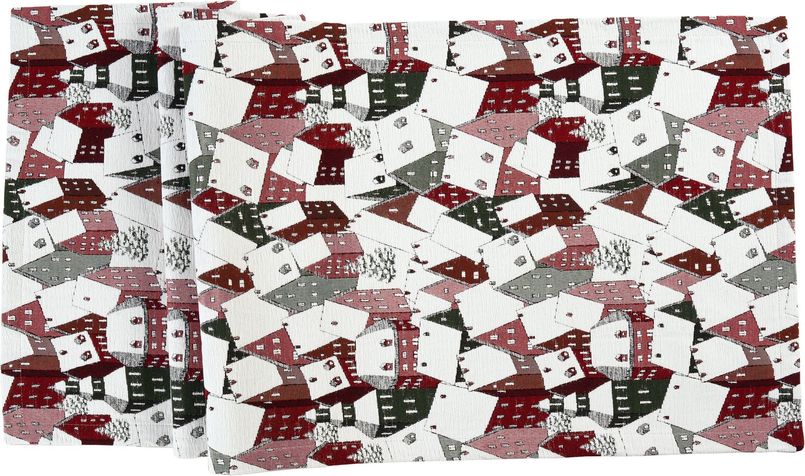 Vánoční běhoun na stůl s motivy zasněžené vesnice z kolekce Rooftop. Běhoun se vzorem domečků se zasněženými střechami, vykouzlí na vašem stole dokonalou zimní atmosféru.