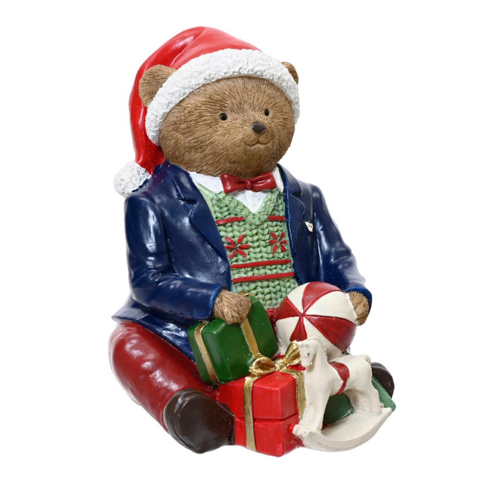 Tento elegantní vánoční medvídek s dárky a houpacím koníkem od značky Kaemingk okouzlí každého milovníka sváteční atmosféry. Sedící figurka v saku, vánočním svetru a čepici přináší pocit radosti, očekávání a dětské zvědavosti, která k Vánocům neodmyslitelně patří.