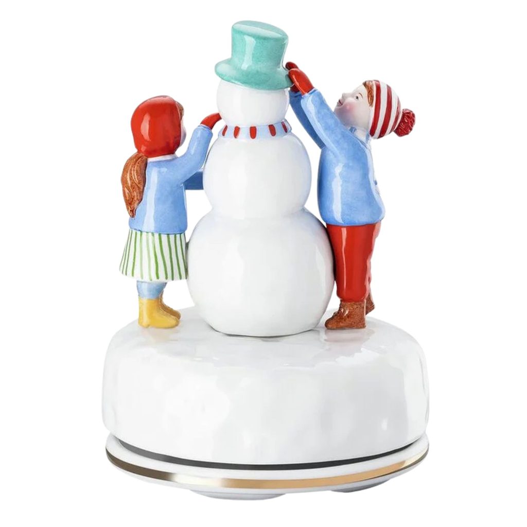 Vánoční porcelánová dekorace hrací skříňka děti staví sněhuláka, která vyzdobí váš dům a navodí tu správnou atmosféru. Hrací skříňka je součástí výroční sběratelské kolekce Christmas Games / Vánoční radovánky 2025, ilustrovaný českou výtvarnicí Renátou Fučíkovou pro porcelánku Hutschenreuther firmy Rosenthal. Tato již 8. kolekce skvěle doplní vaši předchozí sbírku.