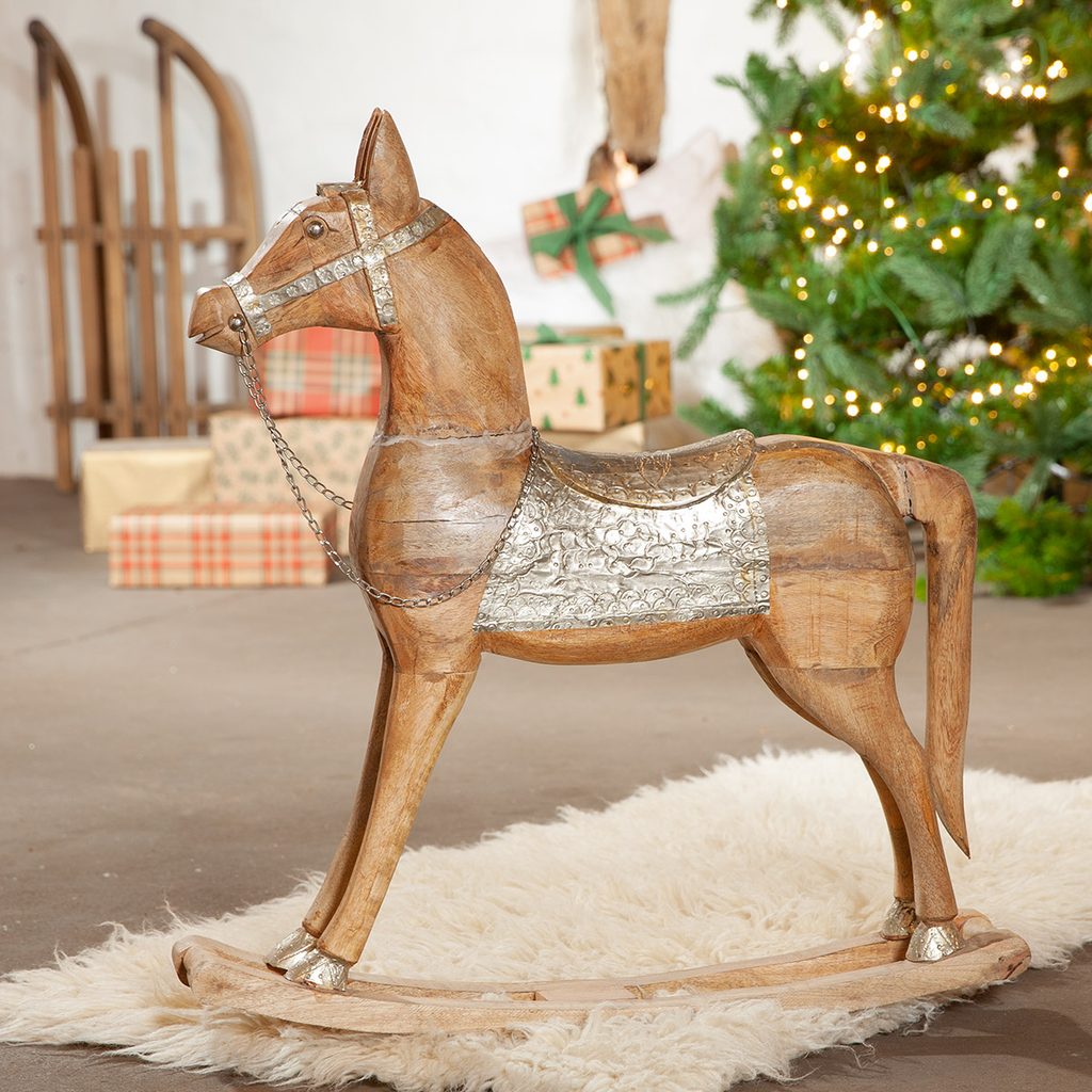 Vánoční dekorace kovový houpací kůň, 70x12x70 cm