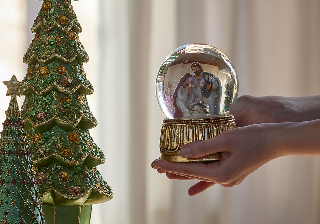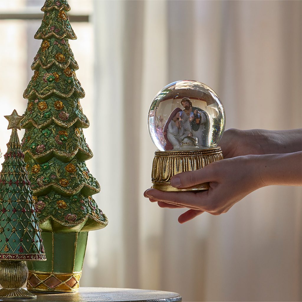 Tato krásná vánoční sněhová koule zobrazuje klasickou scénu Svaté rodiny – Josefa, Marii a Ježíška – zasazenou do kouzelného zimního prostředí. Figurky jsou precizně zpracované a jejich jemné detaily přinášejí scéně autentický a poklidný nádech.