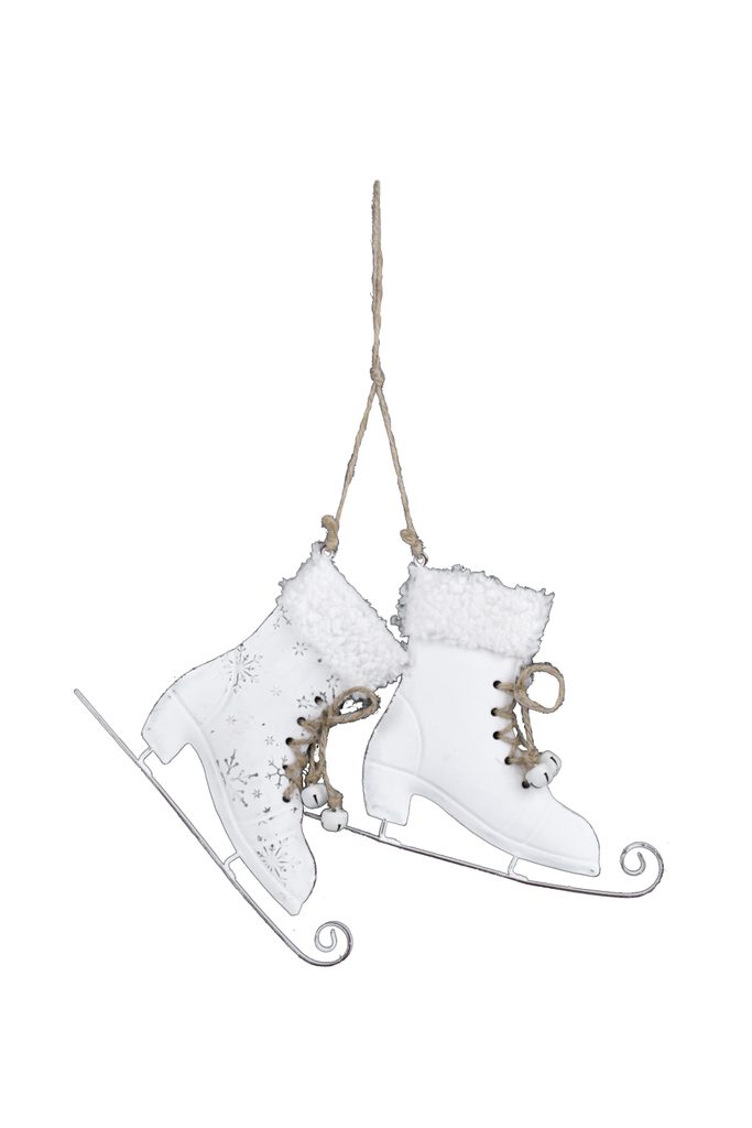 Vánoční dekorace závěsné kovové brusle bílé, 18x25x3 cm