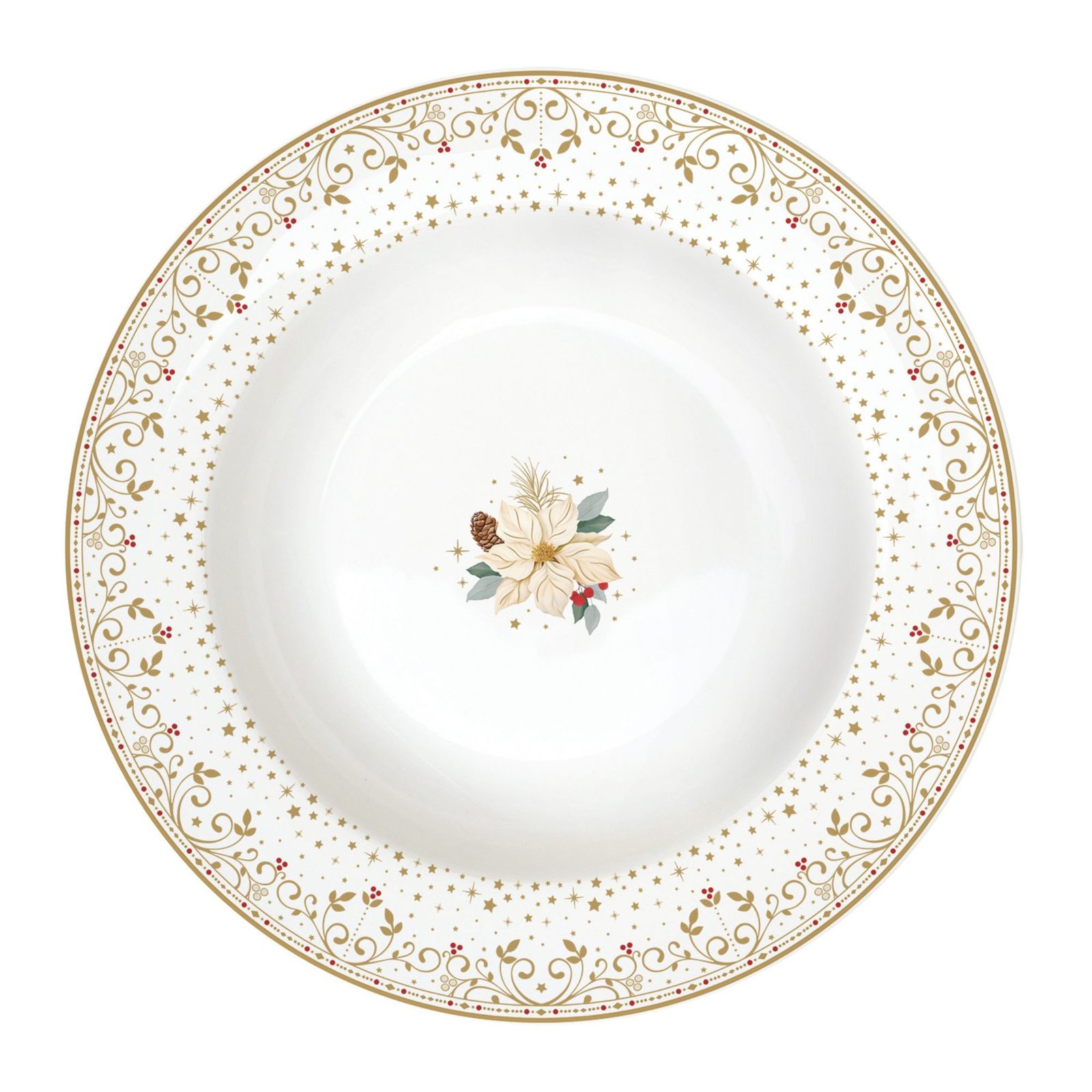 Vánoční porcelánový hluboký talíř White Elegance 21,5 cm od italské značky Easy Life. Elegantní design se zlatými hvězdami, motivem vánoční hvězdy a jemným dekorem. Ideální pro sváteční stolování.