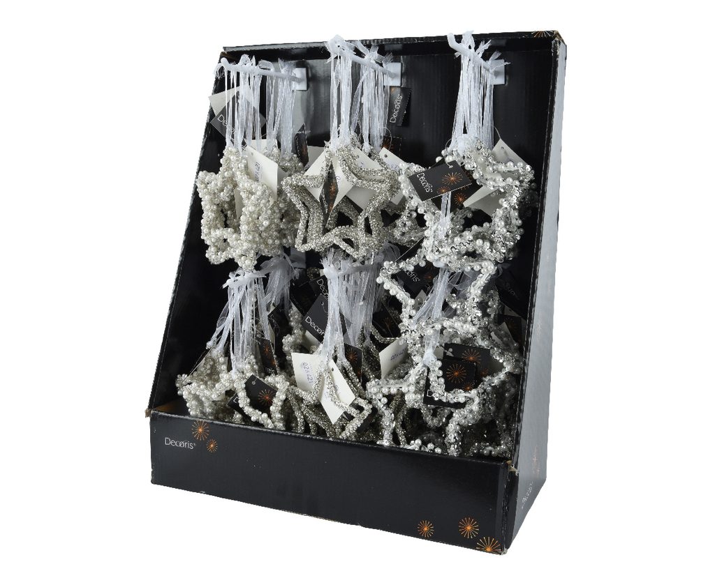 Každá hvězdička je zdobená drobnými flitry a jemnými perličkami, které krásně odrážejí světlo a vytvářejí efekt ledového třpytu. Dostupná je ve třech elegantních barevných variantách – díky tomu si snadno vyberete tu pravou pro svou vánoční výzdobu.