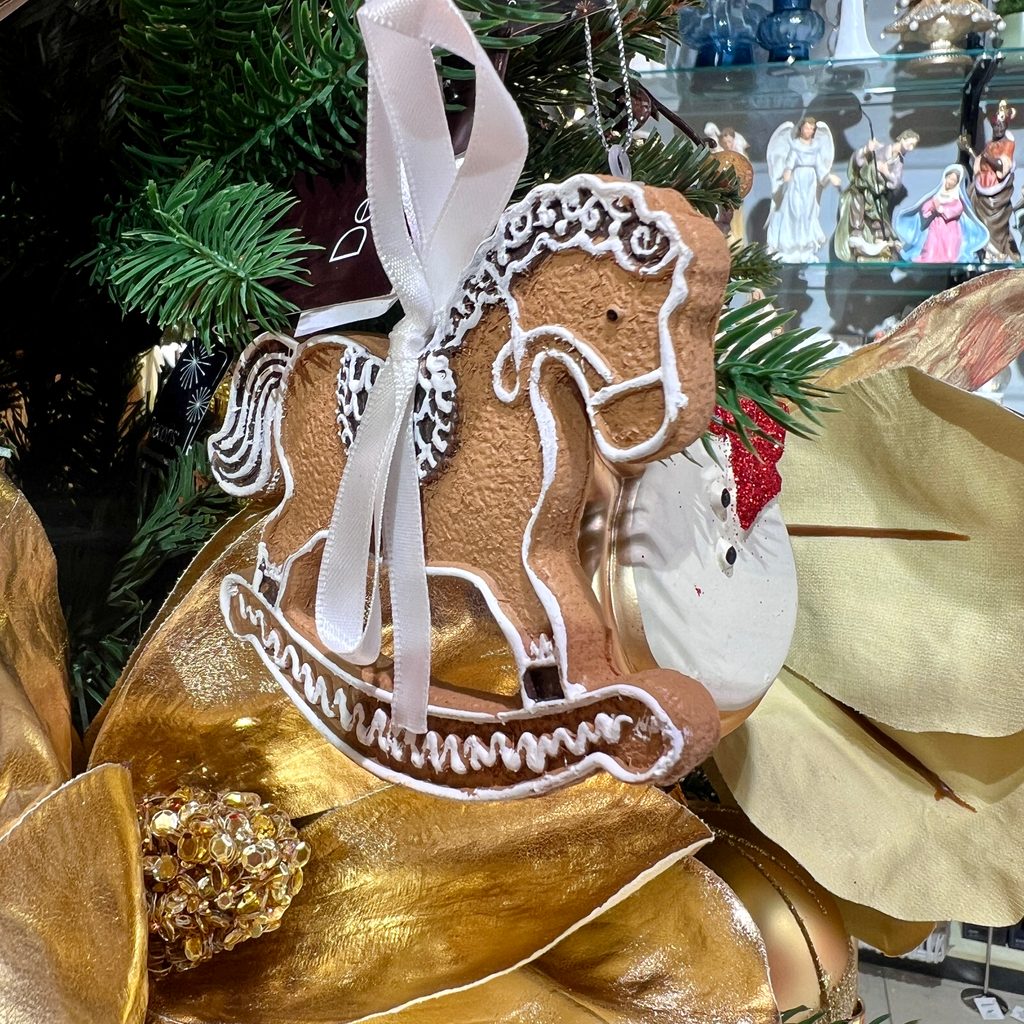 Vánoční ozdoba ve tvaru houpacích koní je ideálním doplňkem pro vaši slavnostní výzdobu. Ozdoby jsou inspirovány tradičním perníkovým cukrovím, což jim dodává nostalgický a kouzelný vzhled. Každý koník je zdoben jemnými bílými detaily a doplněn bílou stuhou pro snadné zavěšení na vánoční stromek.