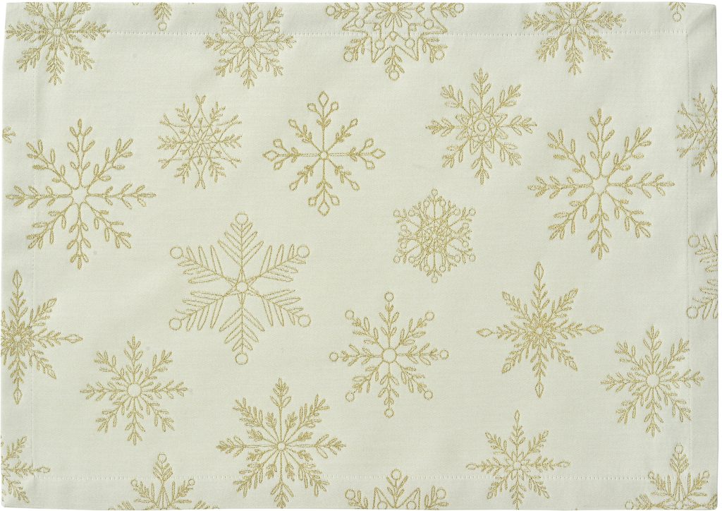 Elegantní vánoční prostírání Cristallo Luce bílo-zlaté 35x50 cm od značky Sander table&home. Vyrobeno v Německu z kvalitního žakáru, zdobené zlatou výšivkou sněhových vloček s jemným lesklým efektem. Dokonalý detail pro slavnostní vánoční stolování.