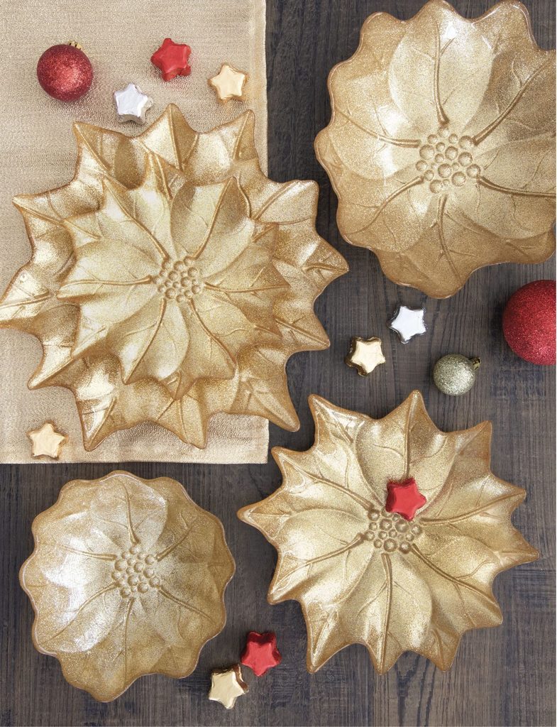 Elegantní skleněný talíř ve tvaru vánoční hvězdy z kolekce White Elegance od značky Easy Life. Průměr 27 cm, luxusní zlaté provedení, ideální na sváteční servírování cukroví, dezertů nebo jako dekorace. Dodáváno v dárkové krabičce.