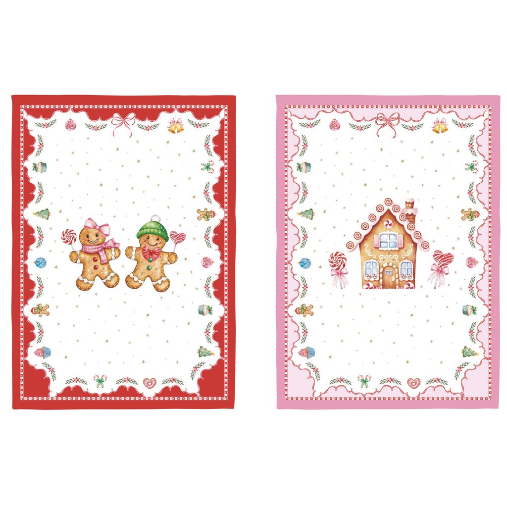 Rozveselte svou kuchyni vánočním setem dvou bavlněných utěrek Sweet Christmas od Easy Life – roztomilí perníčci a kouzelná chaloupka dodají vaření i pečení sladkou sváteční atmosféru. Skvěle doladí vaši vánoční kuchyň a potěší i jako dárek.