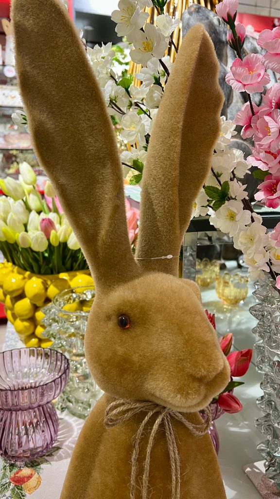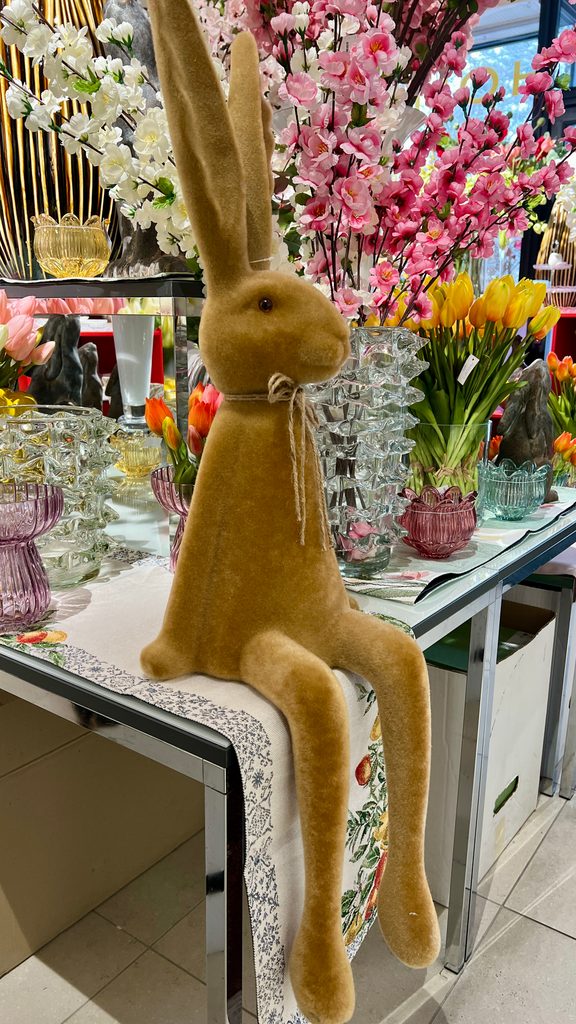 Velikonoční dekorace semišový sedící zajíc hnědý, 28x28x92 cm