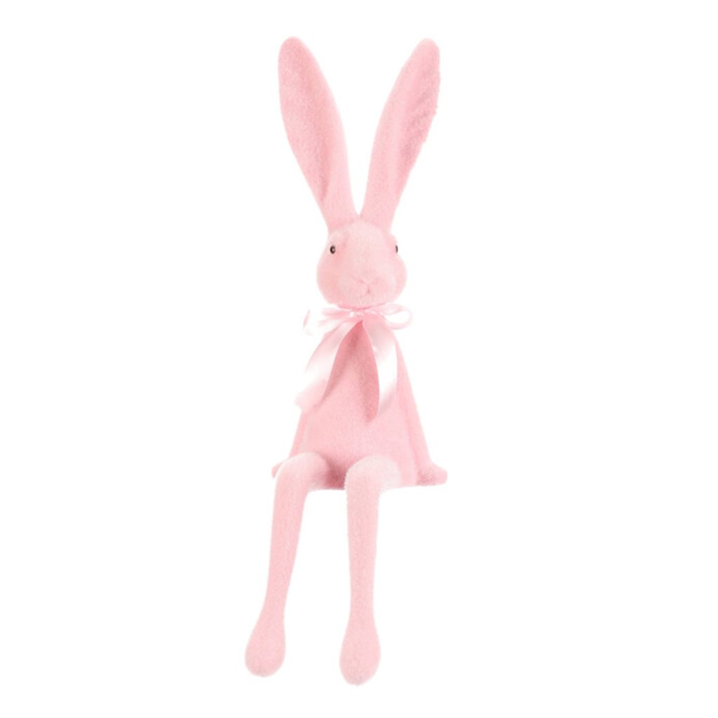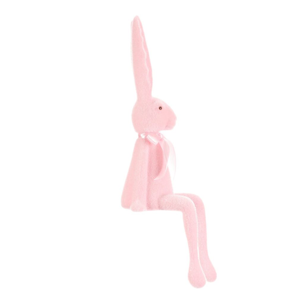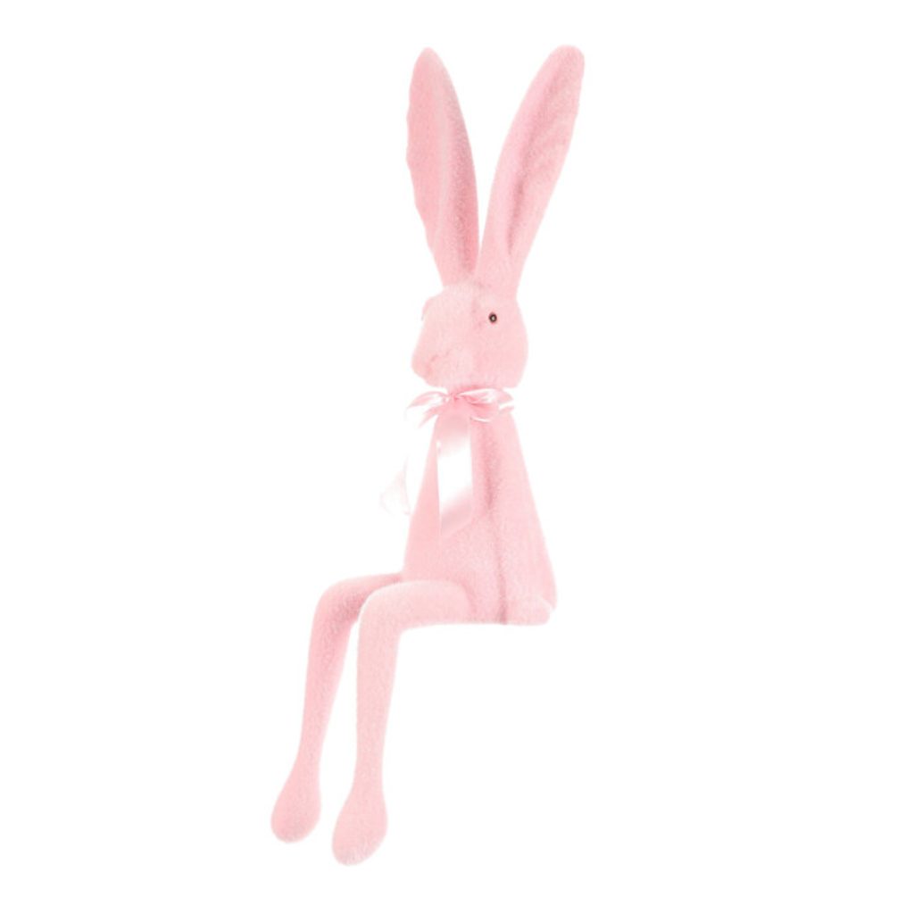 Velikonoční dekorace semišový sedící zajíc světle růžový, 18x20x62 cm