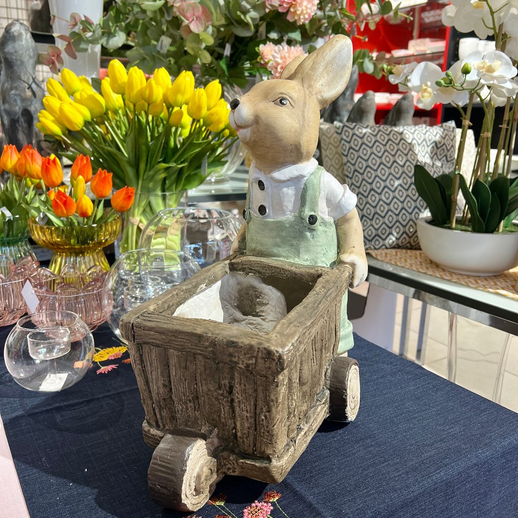 Velikonoční dekorace zajíc s trakařem obal na květiny hnědý, 41x20x41 cm