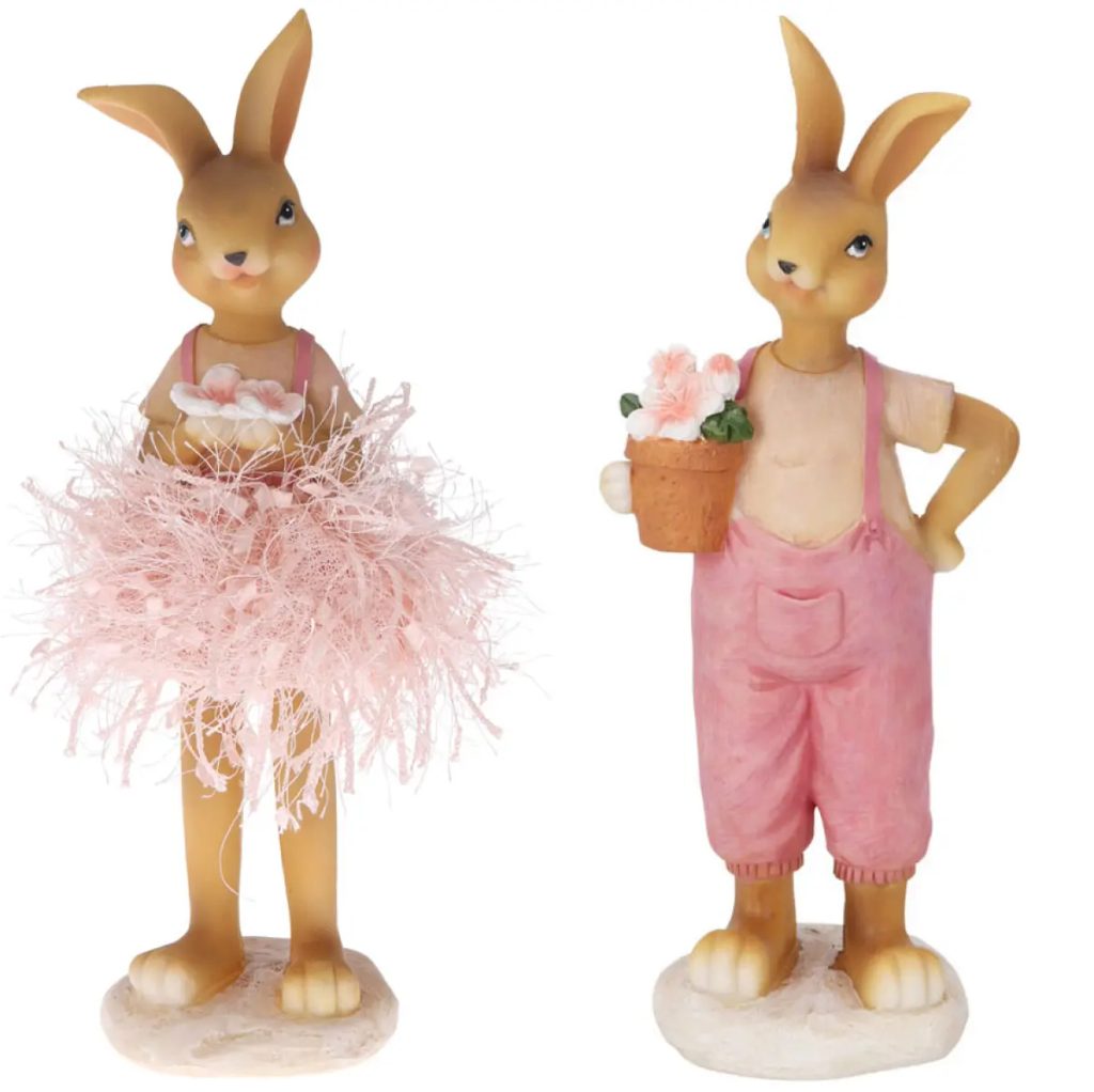 Velikonoční dekorace zajíc/zaječice růžový 1ks, 11x7cm 2x24cm
