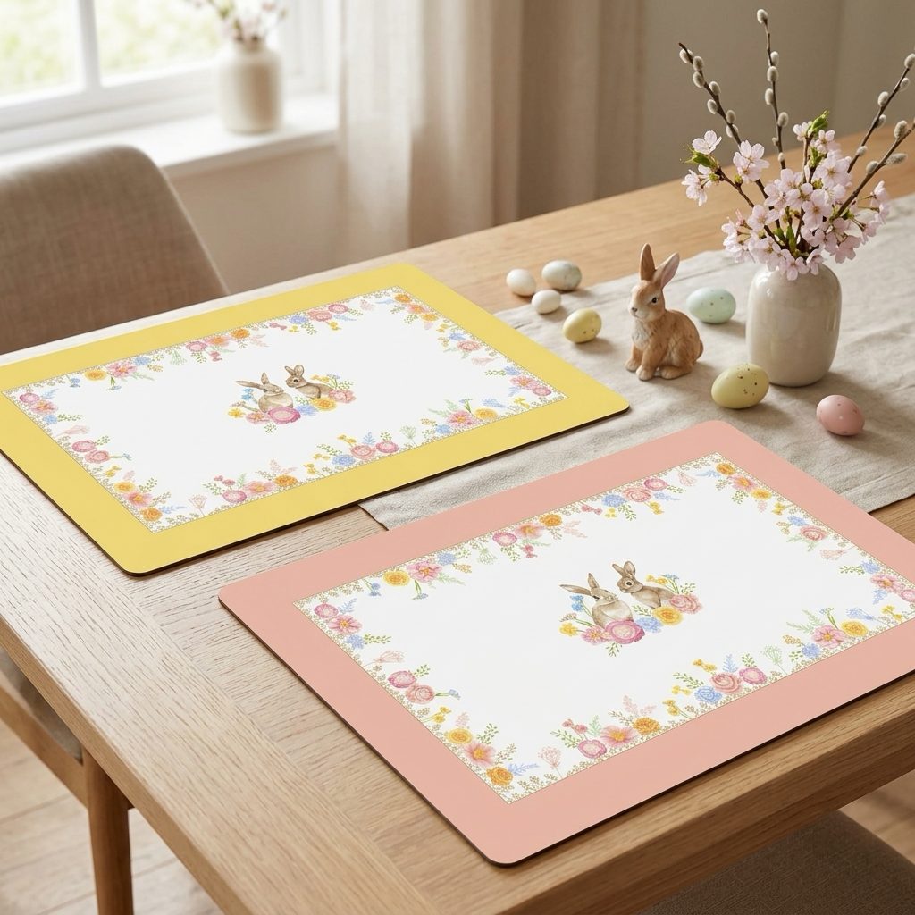Velikonoční oboustranné prostírání Tres Jolie 45 × 30 cm od značky Easy Life s motivem zajíčků a pastelových květin rozzáří váš jarní stůl. Praktické, dekorativní a snadno omyvatelné – ideální pro velikonoční stolování.